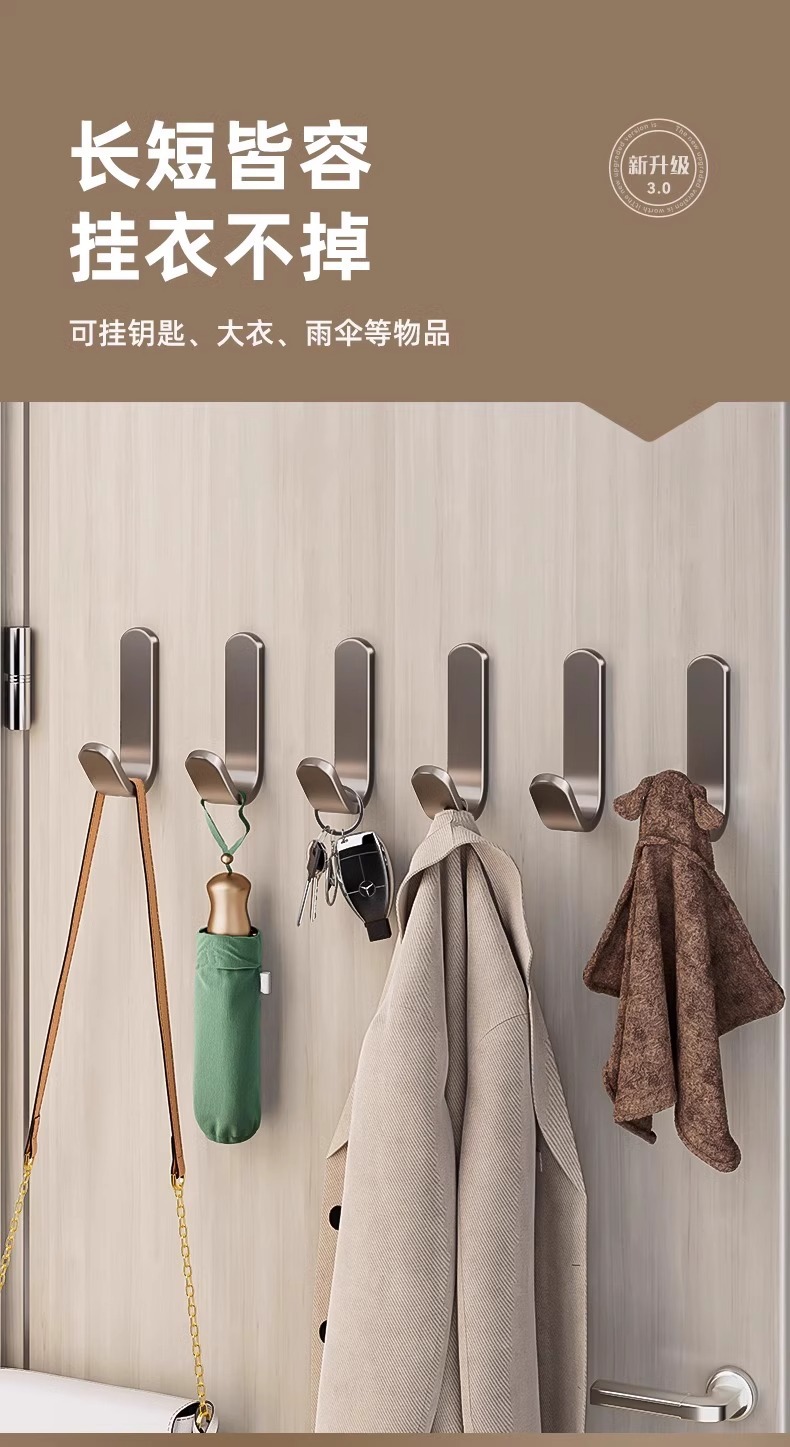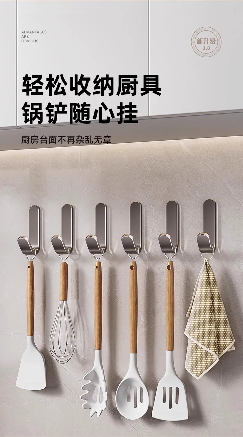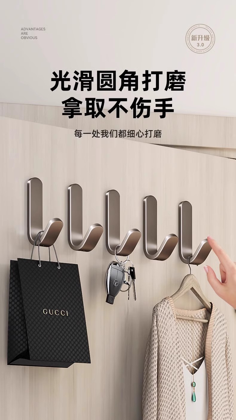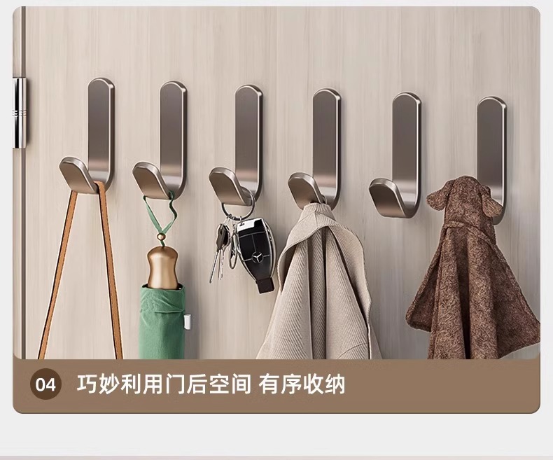 挂钩粘胶免打孔厨房壁挂 枪灰粘钩墙壁贴 墙上承重厨房浴室门后钩子