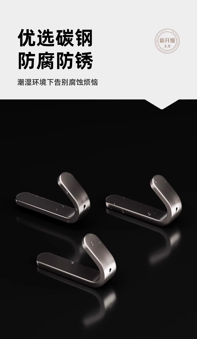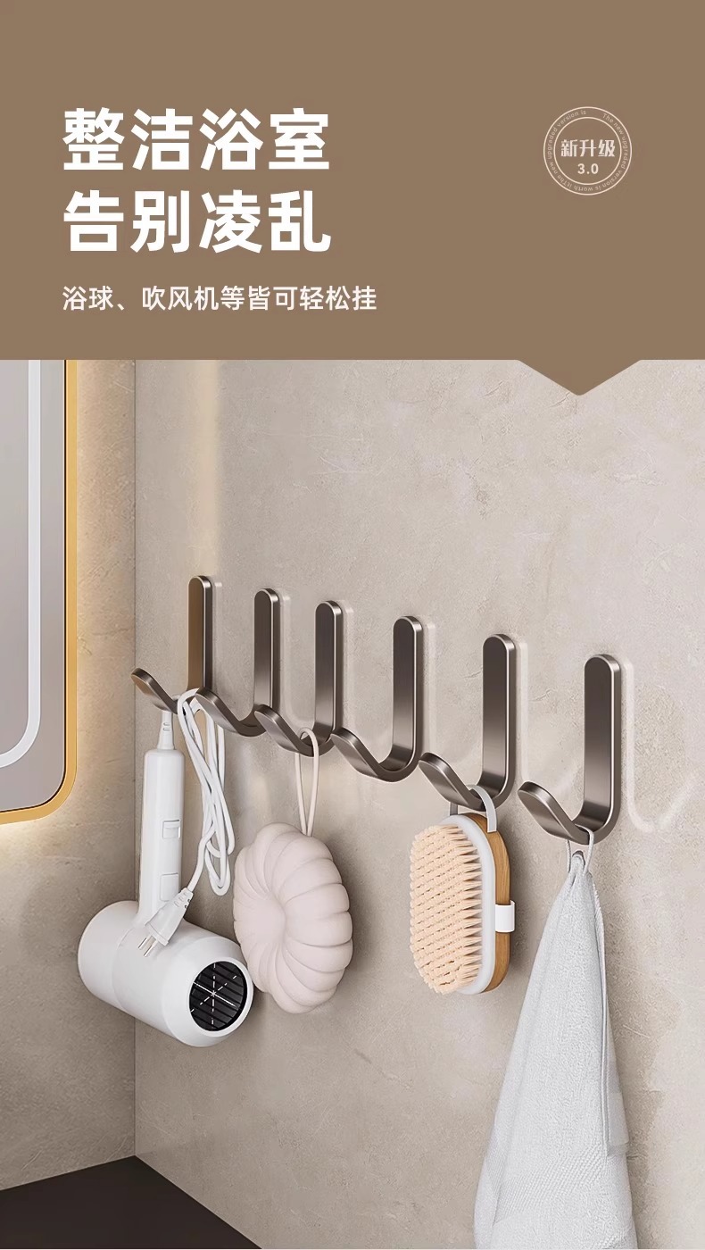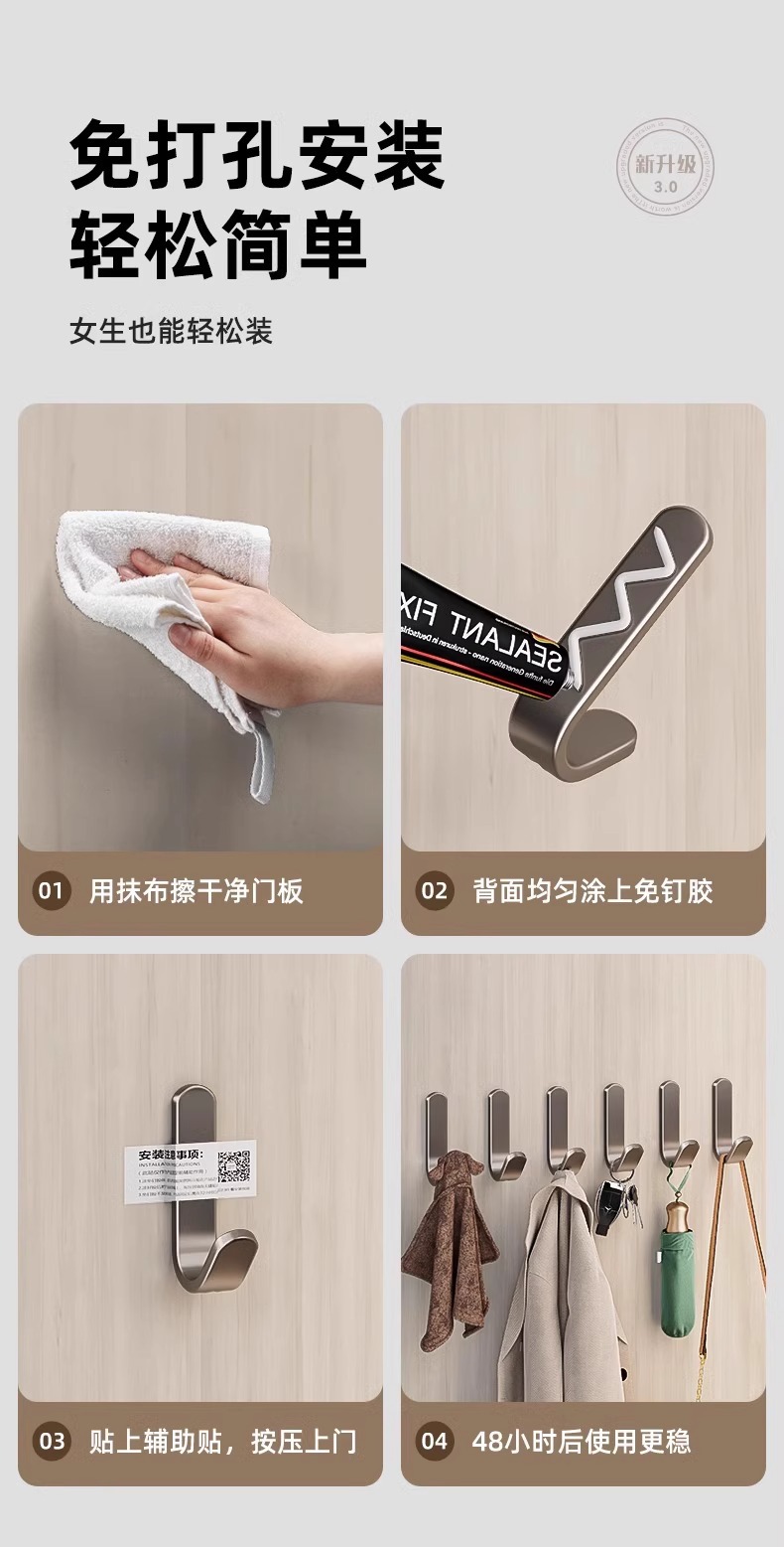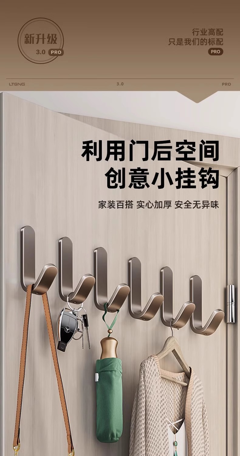挂钩粘胶免打孔厨房壁挂 枪灰粘钩墙壁贴 墙上承重厨房浴室门后钩子