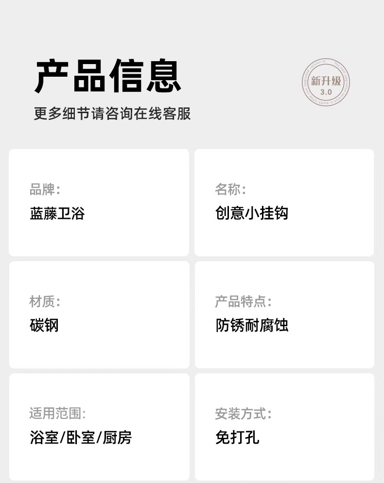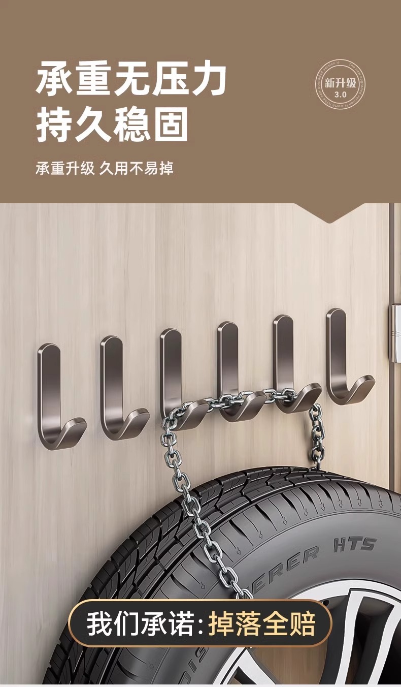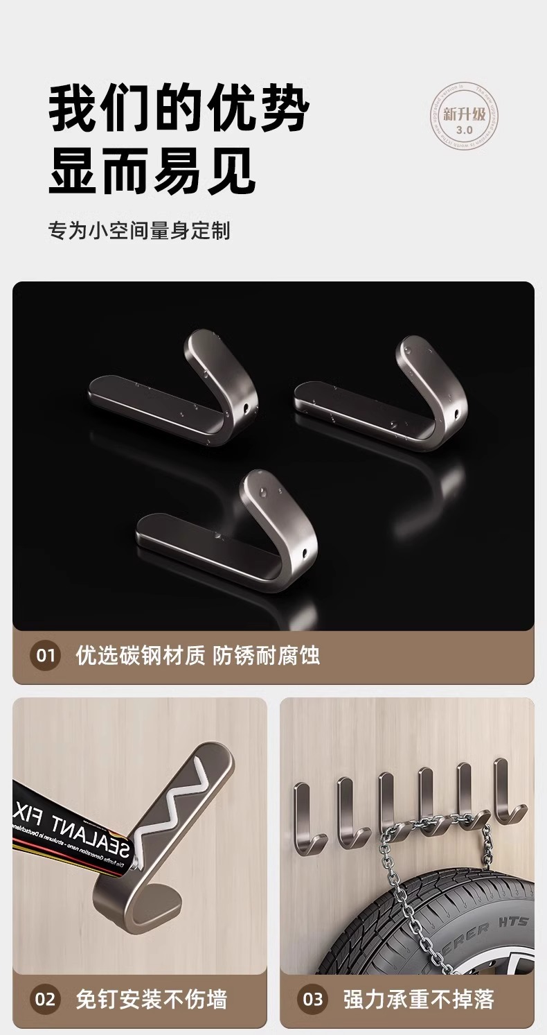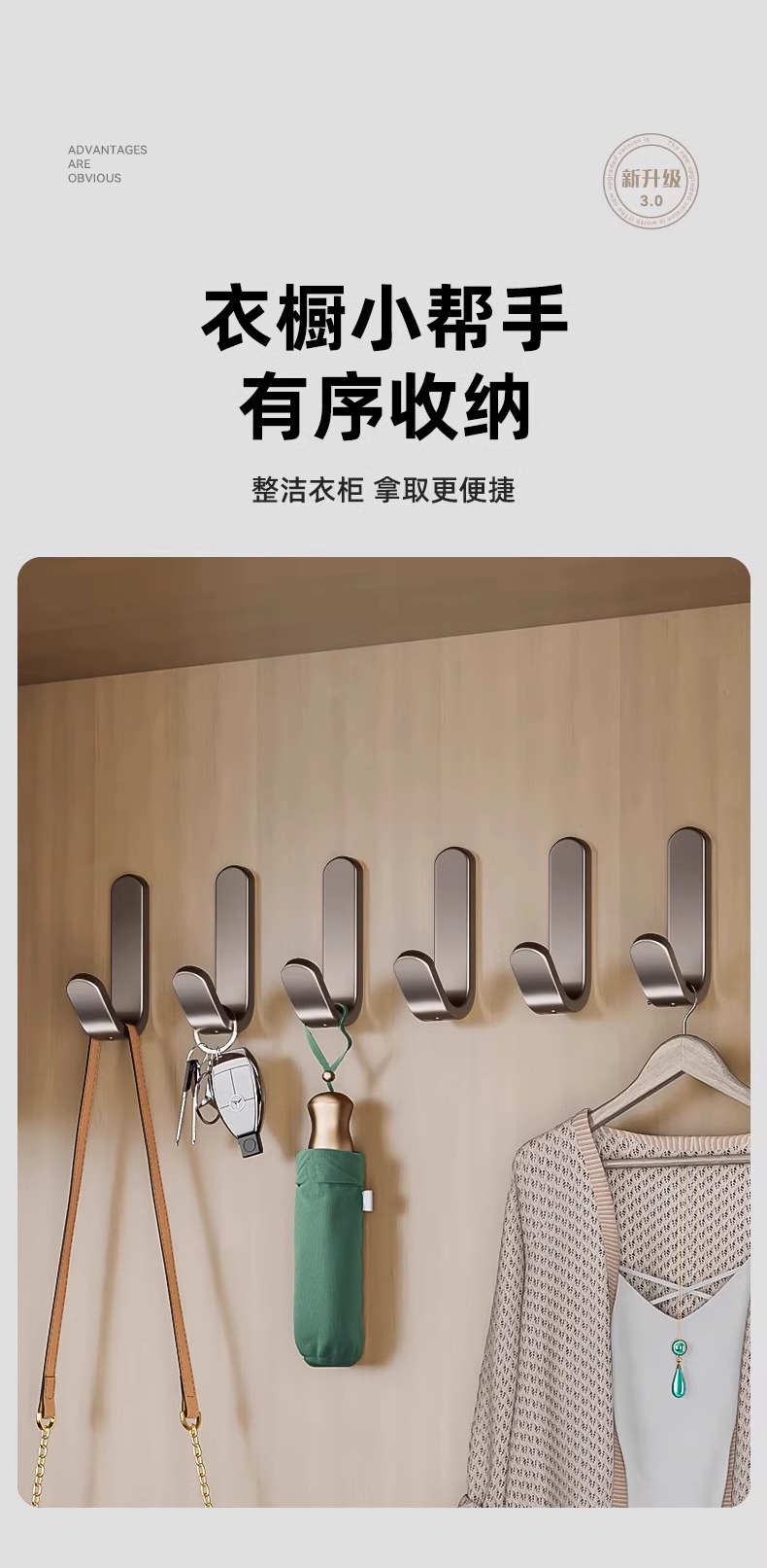 挂钩粘胶免打孔厨房壁挂 枪灰粘钩墙壁贴 墙上承重厨房浴室门后钩子