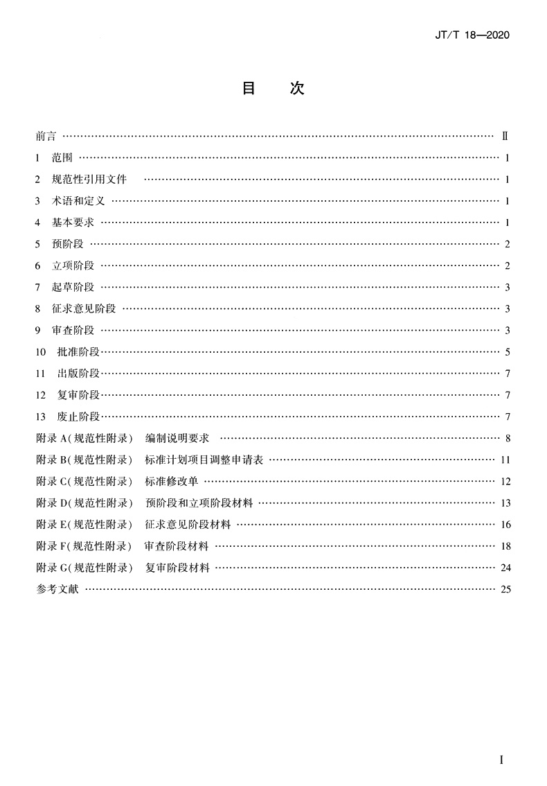 | 交通运输标准制定、修订程序和要求(JT/T 18—2020) | ||