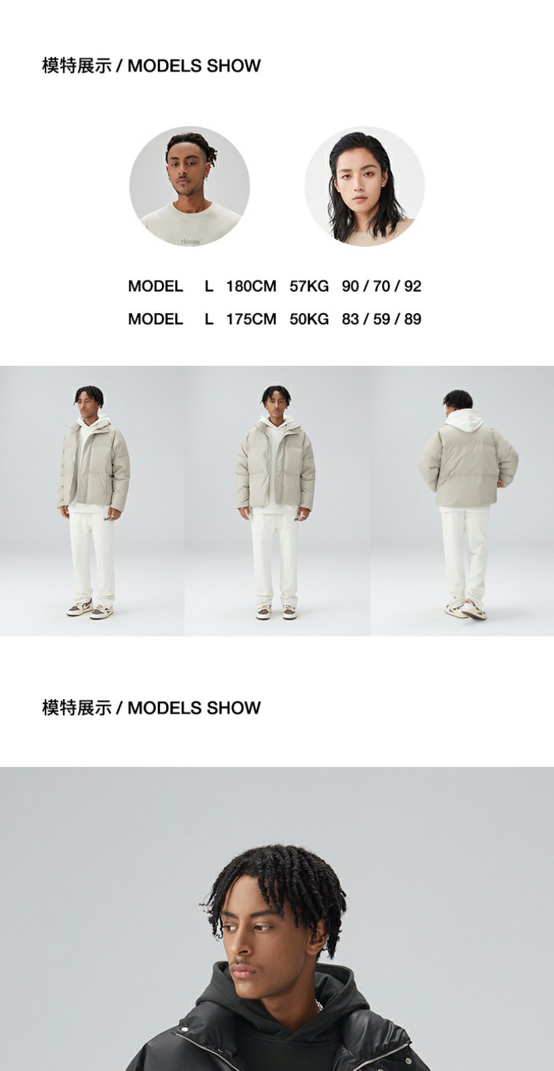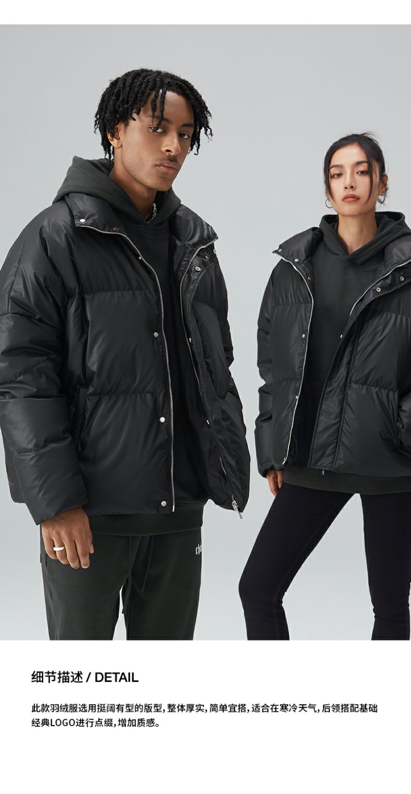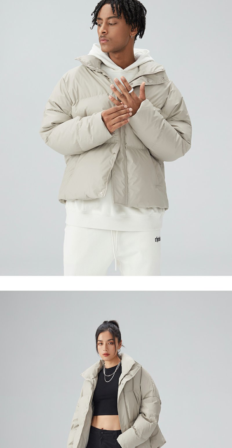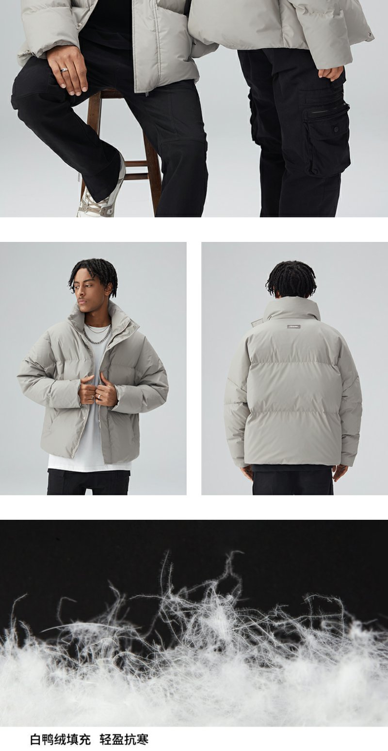 CHINISM CH鸭绒羽绒服男冬季加厚保暖外套潮牌短款立领休闲面包服