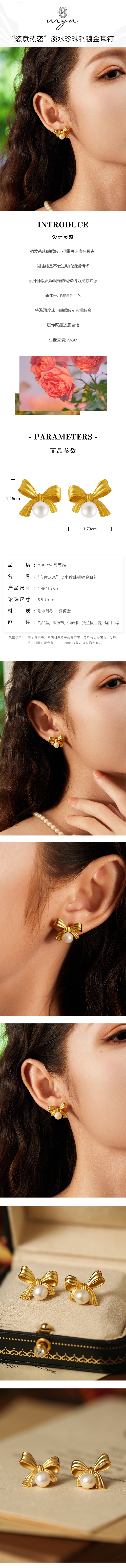 Manreya玛芮雅 “恣意热恋”淡水珍珠铜镀金耳钉法式浪漫小众文艺