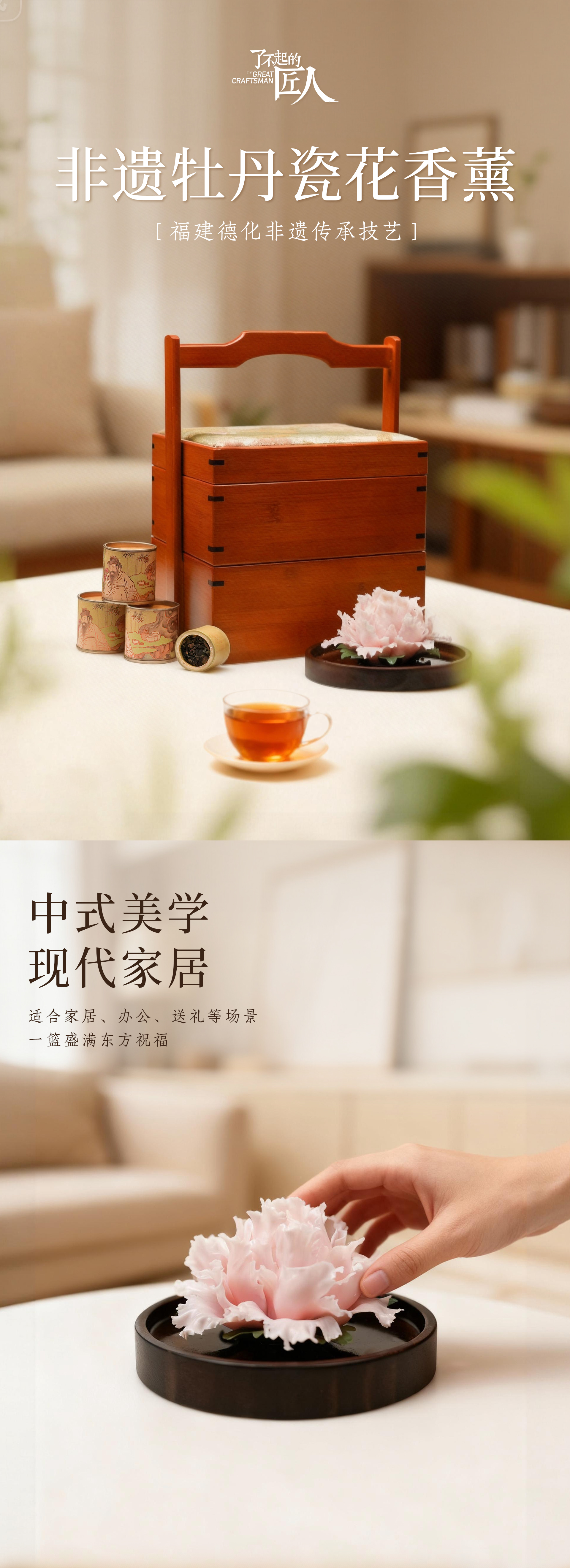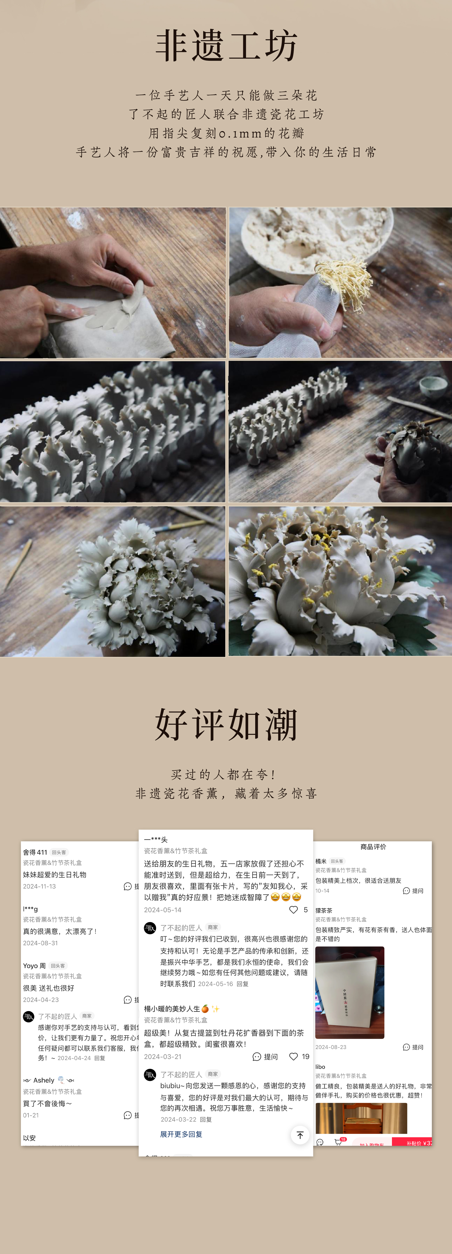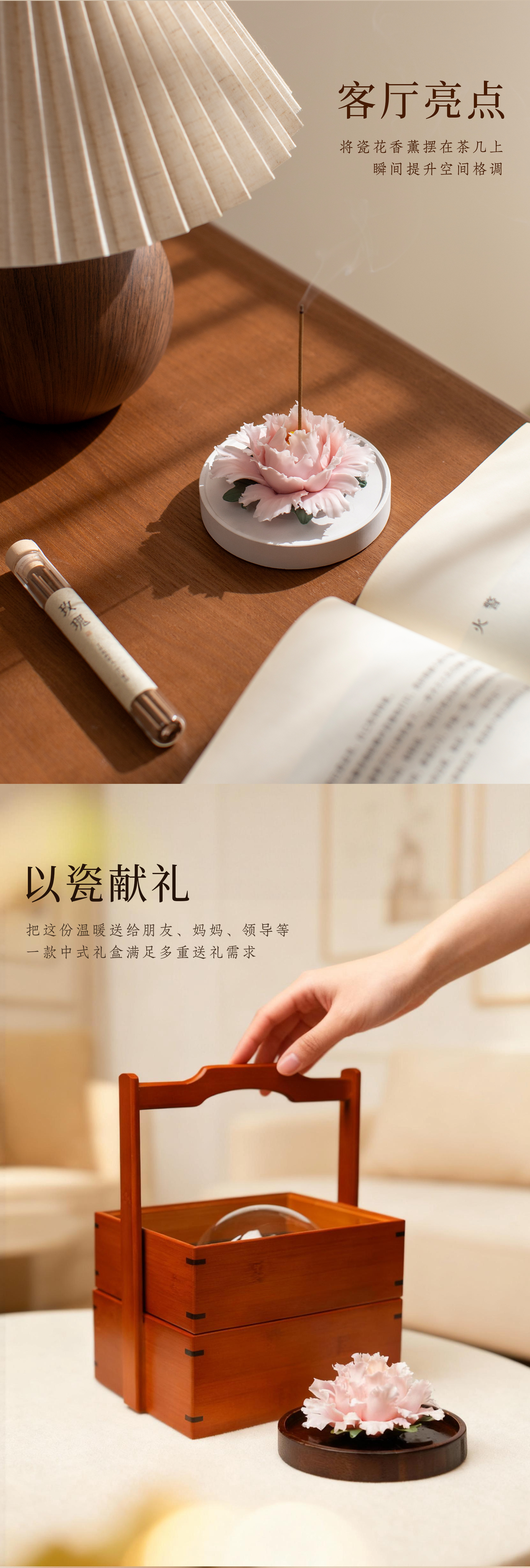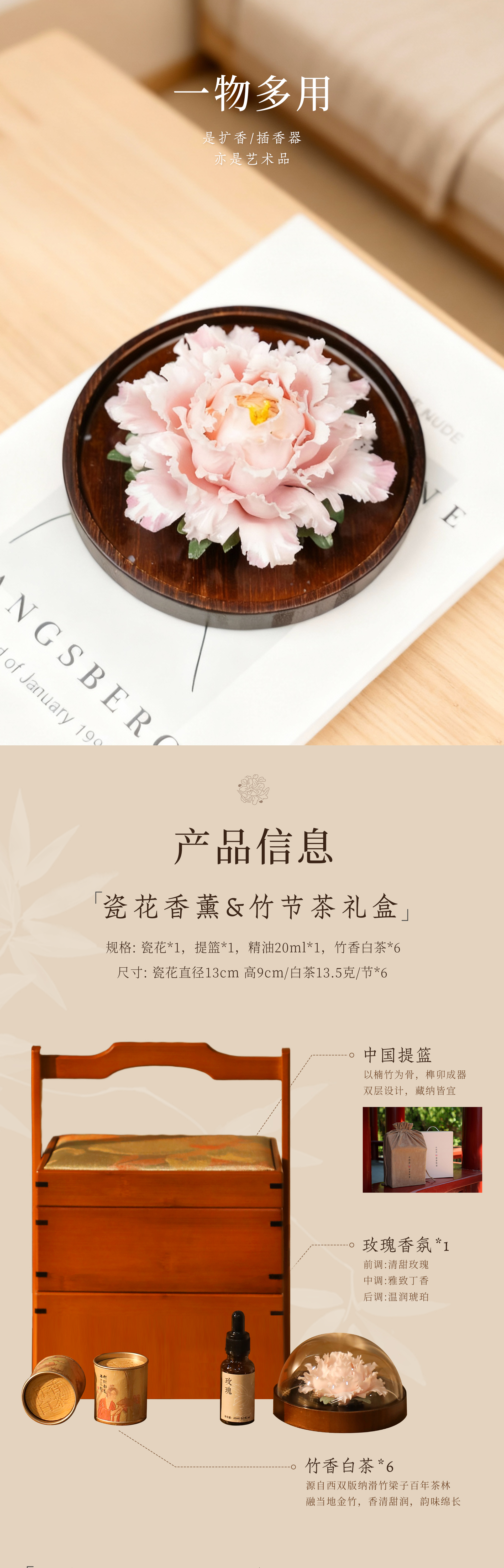 非遗陶瓷花香薰竹节茶礼盒 礼物手工花小众高级感生日礼品新婚无火香氛