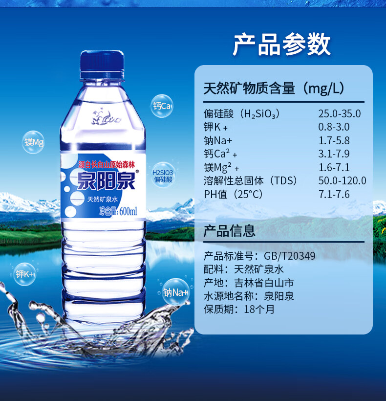 泉阳泉 长白山天然矿泉水 600ml*24瓶 整箱装 1990590
