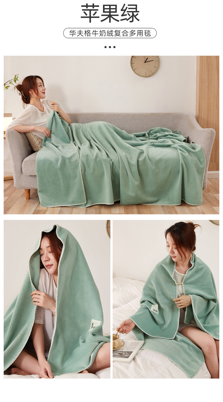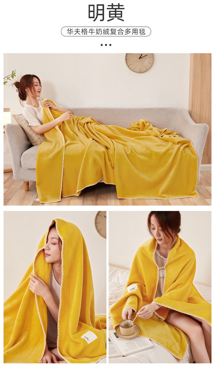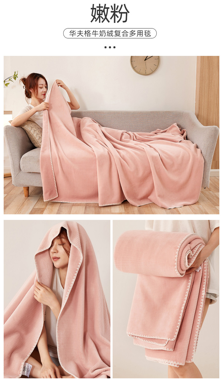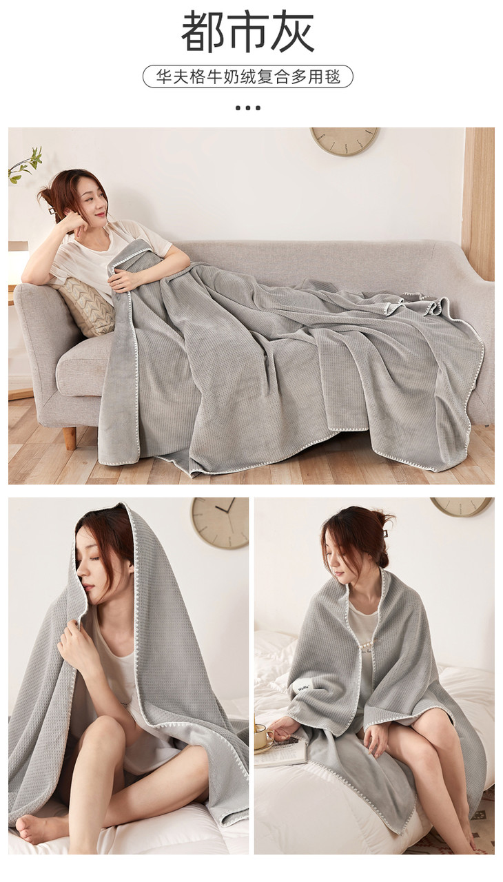 【品牌直发】加倍生活 华夫格牛奶绒双层复合毛毯 居家披肩毯 休闲午睡盖毯 多种尺寸
