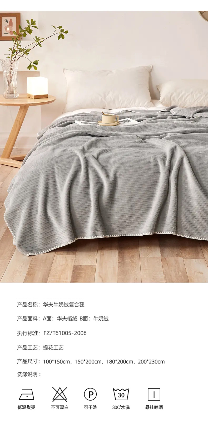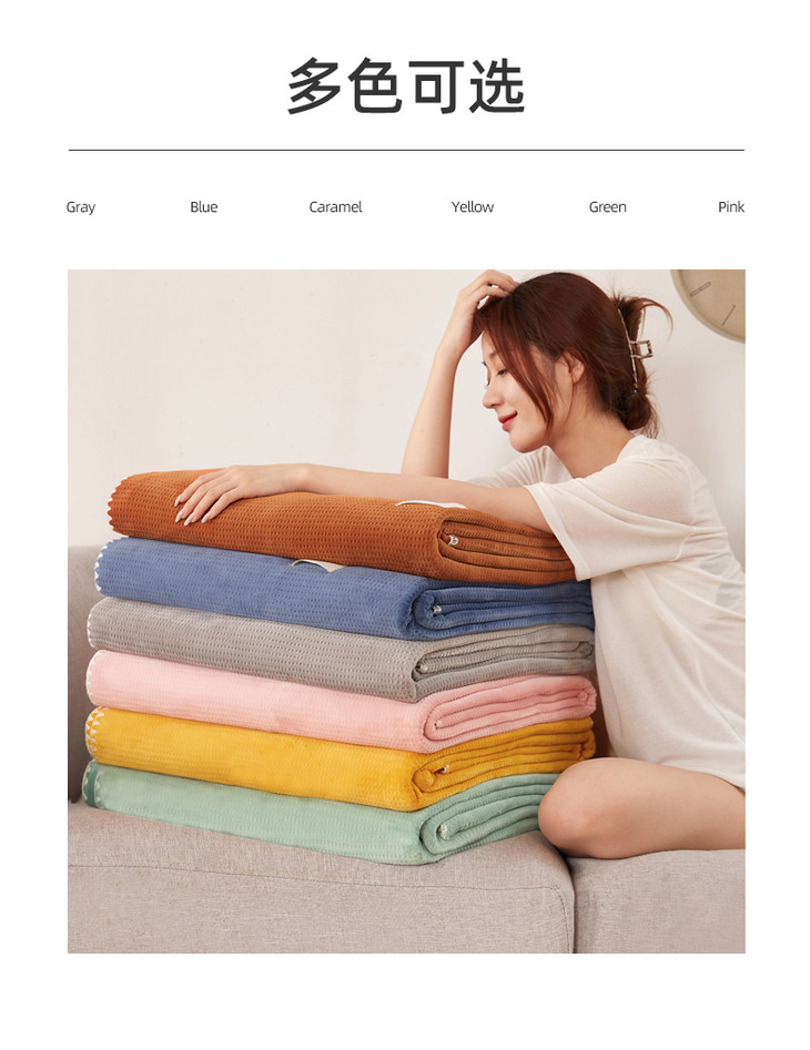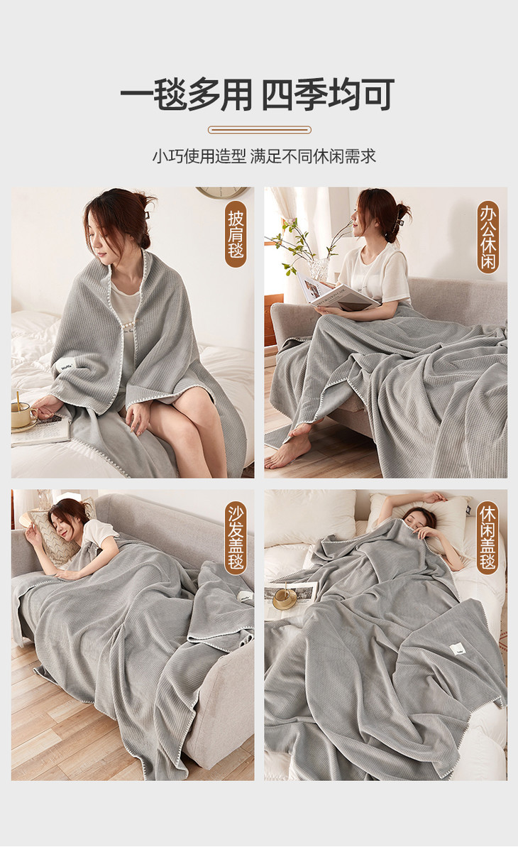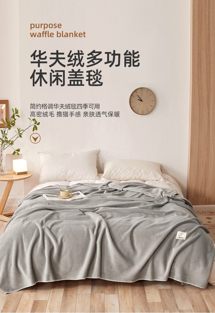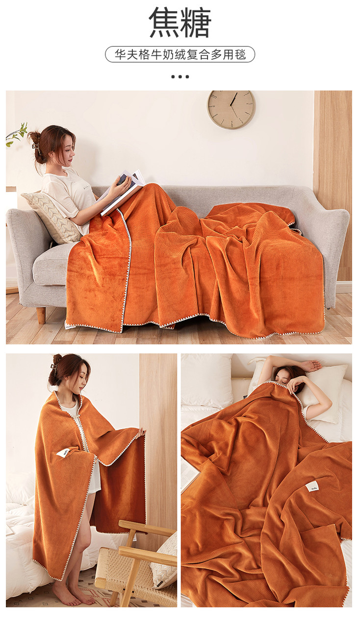 【品牌直发】加倍生活 华夫格牛奶绒双层复合毛毯 居家披肩毯 休闲午睡盖毯 多种尺寸