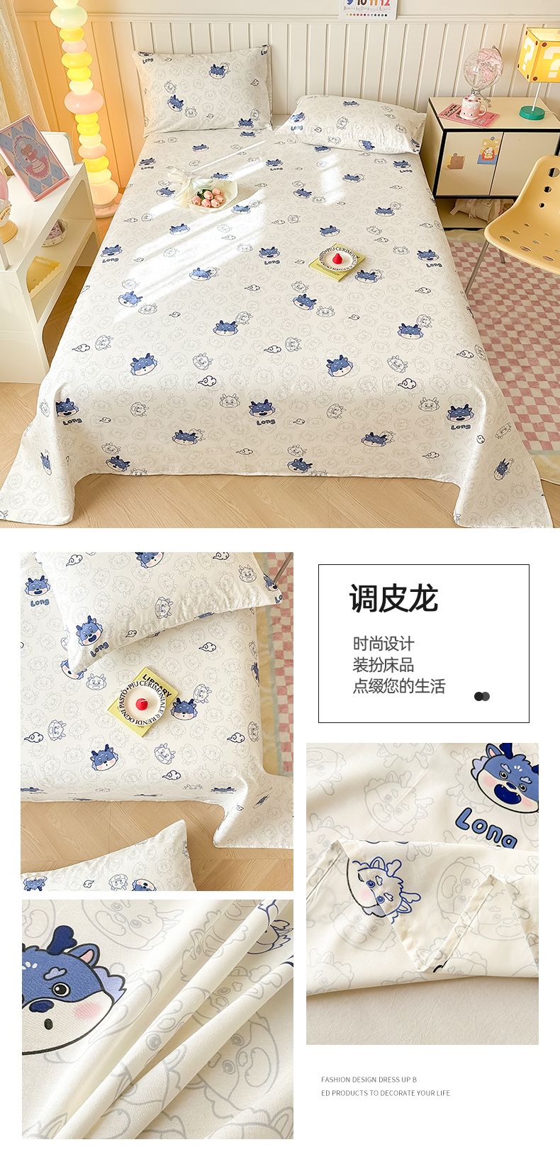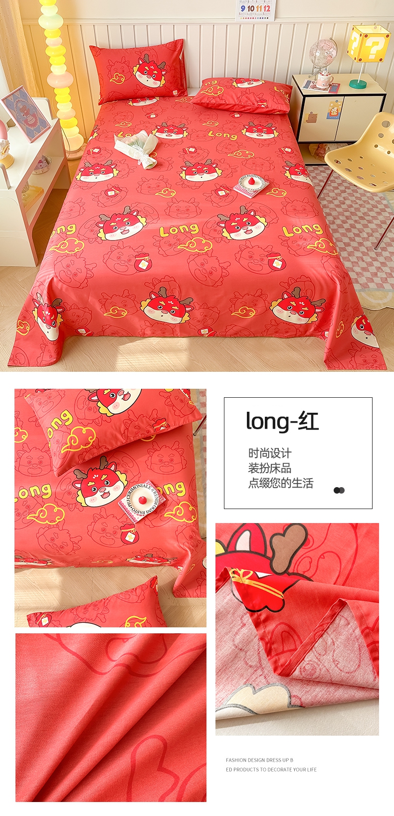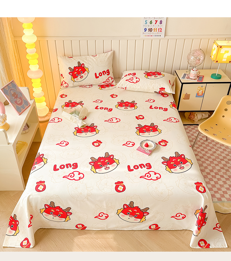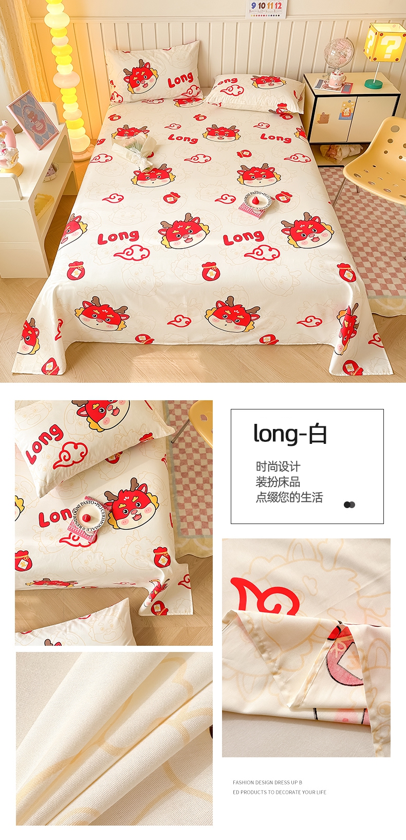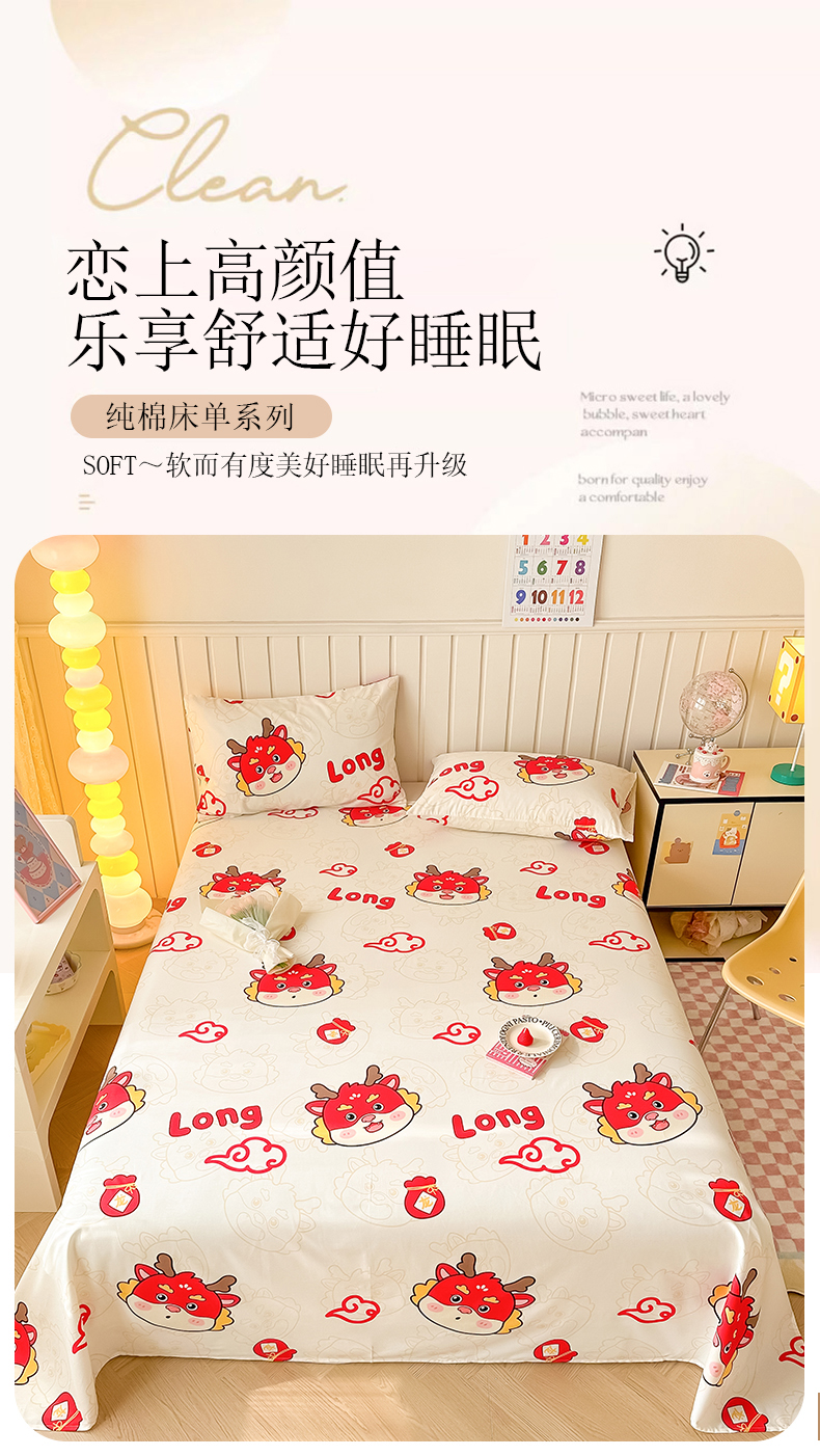 自然醒龙年纯棉床单单件全棉100卡通被单儿童炕单人宿舍床枕套三件套3JY