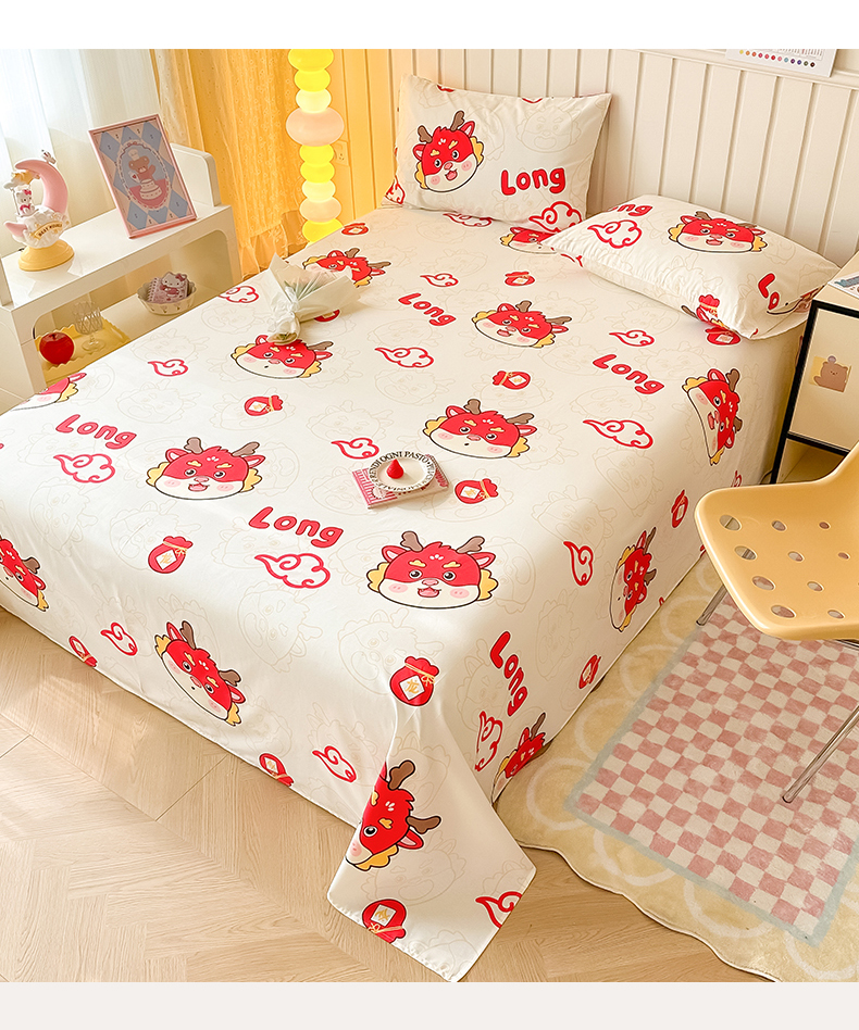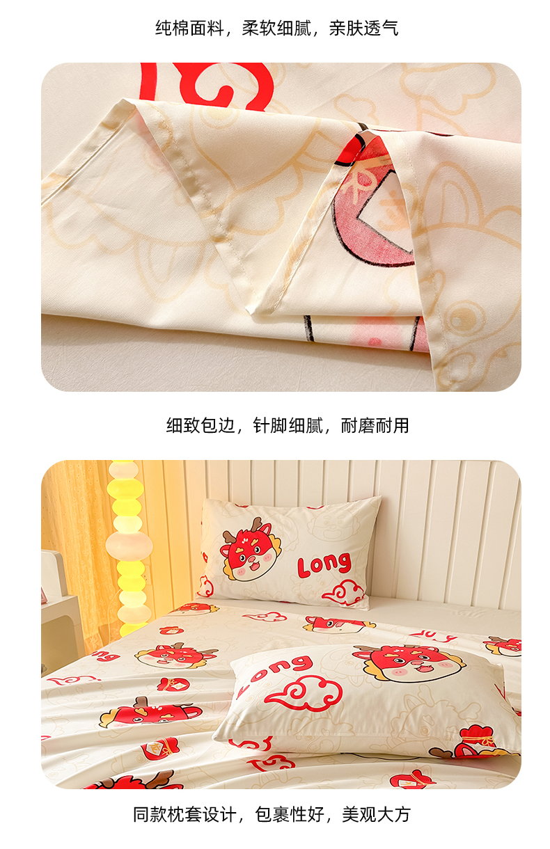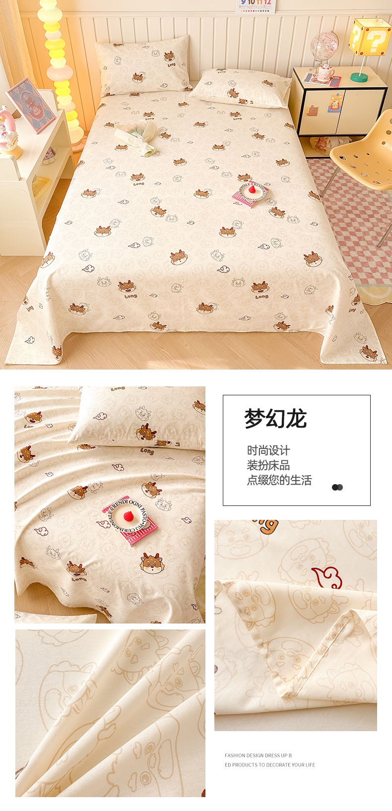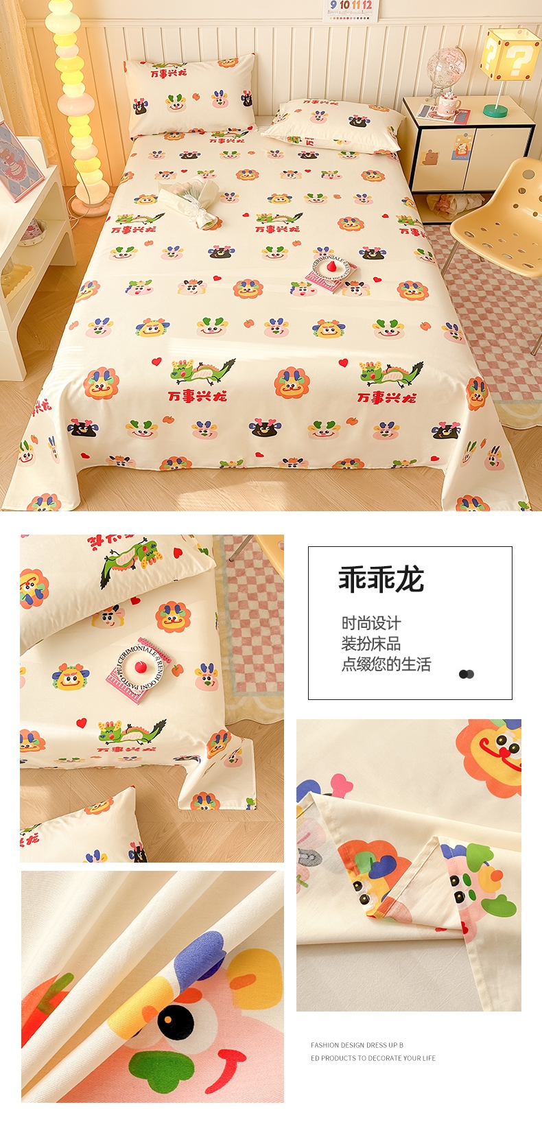自然醒龙年纯棉床单单件全棉100卡通被单儿童炕单人宿舍床枕套三件套3JY