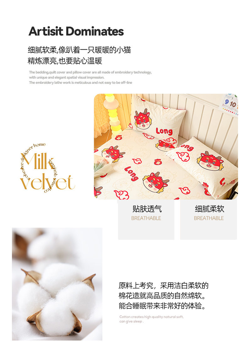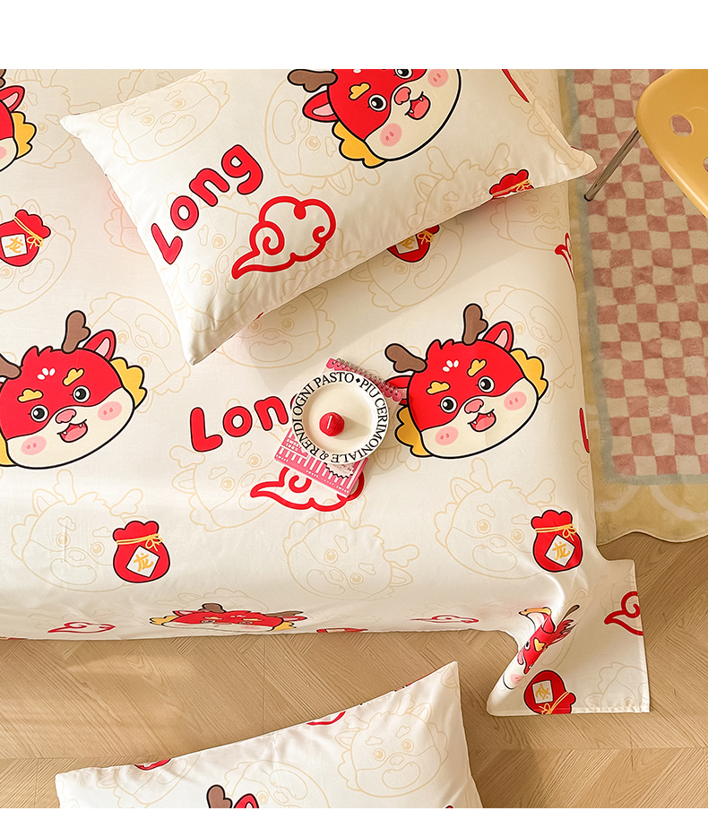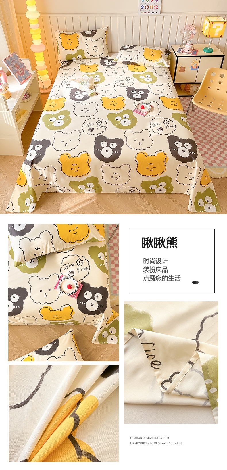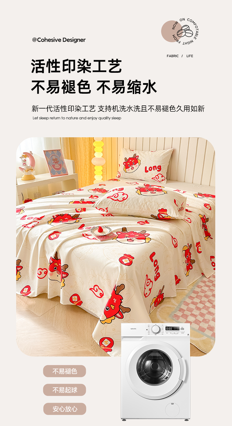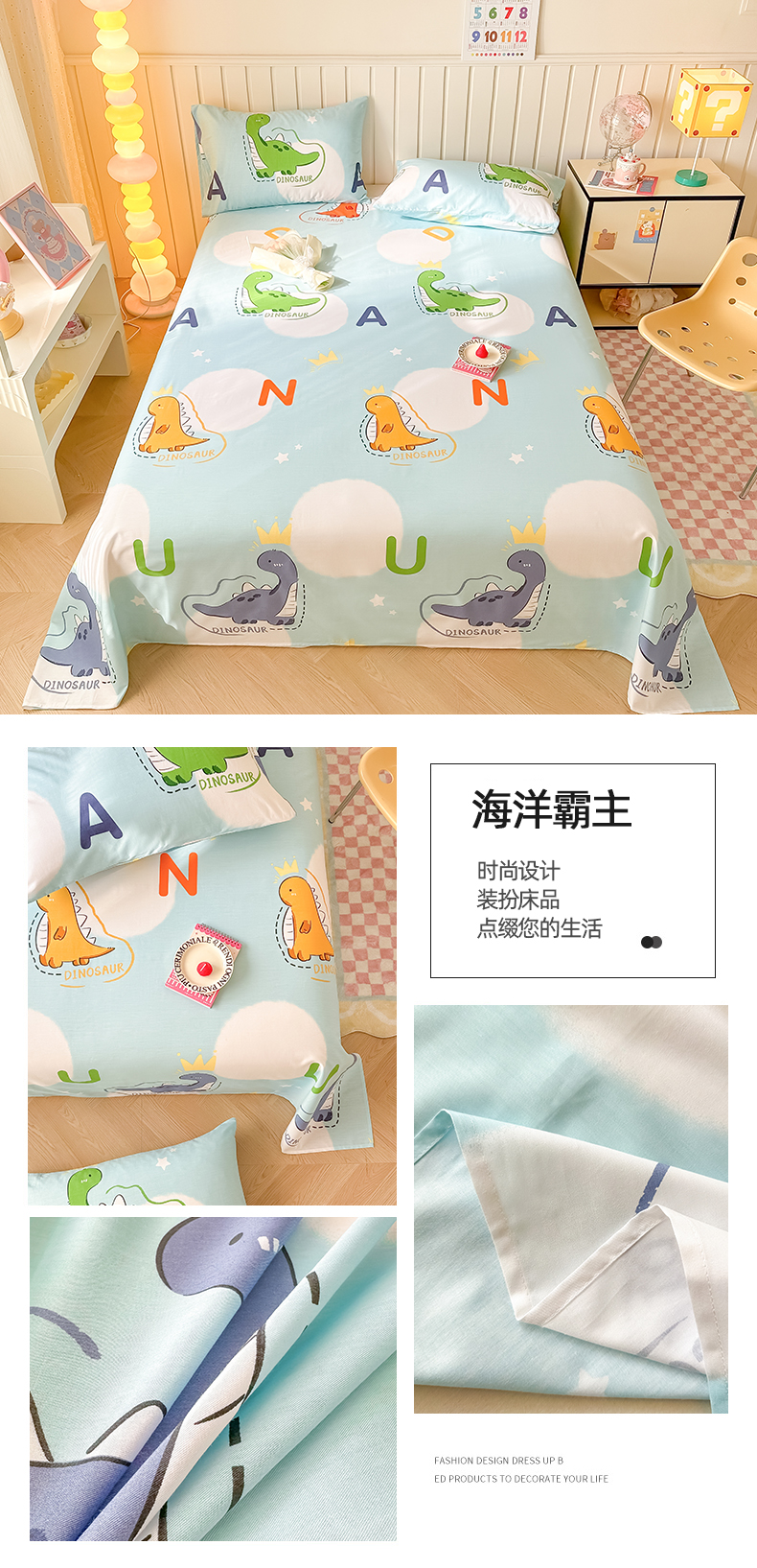 自然醒龙年纯棉床单单件全棉100卡通被单儿童炕单人宿舍床枕套三件套3JY