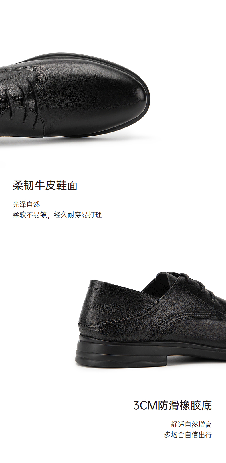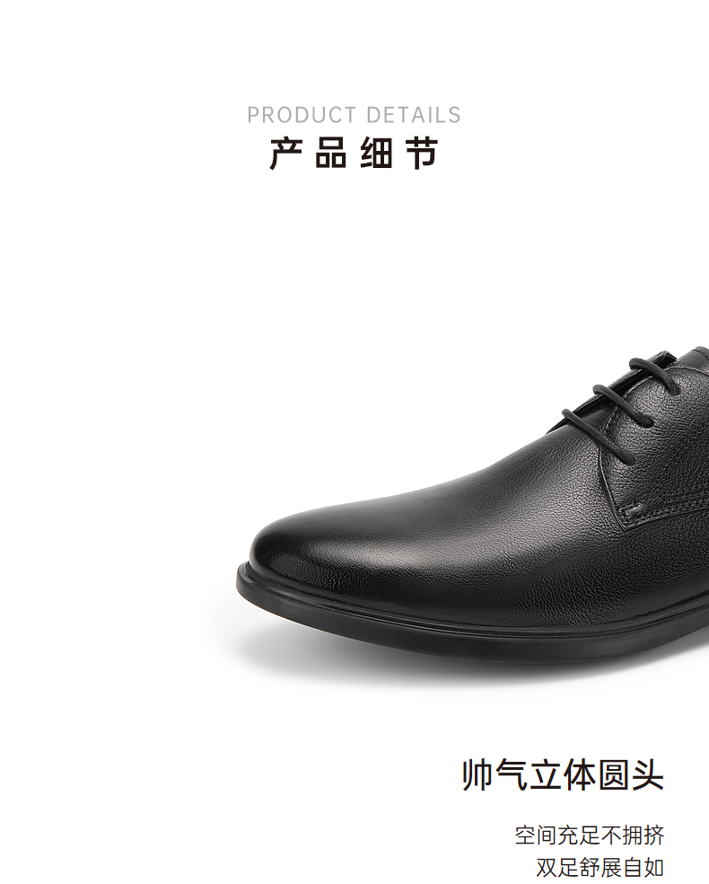 千百度男鞋英伦风男士休闲商务真皮正装黑色皮鞋夏季舒适A24115852