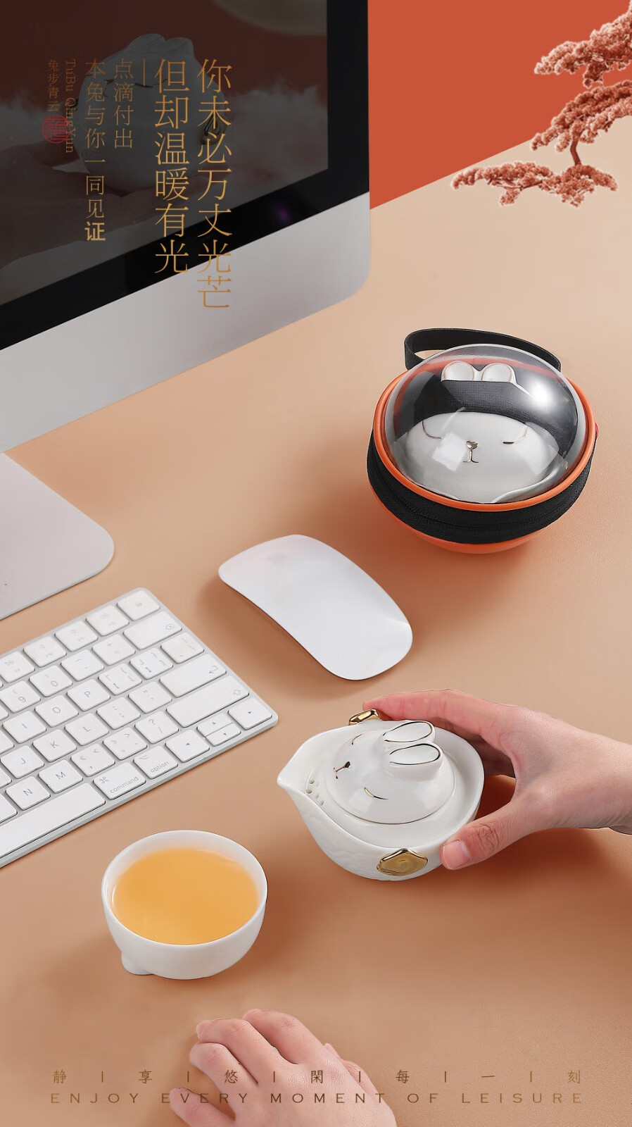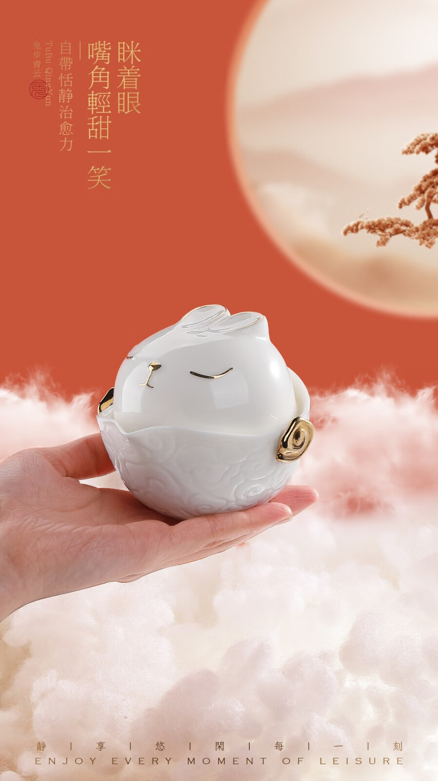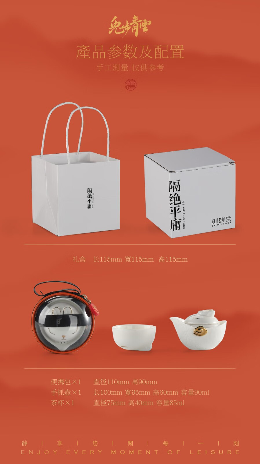 知勤堂兔年陶瓷便携 羊脂玉瓷精致小众伴手礼定制礼品 茶杯茶具白色