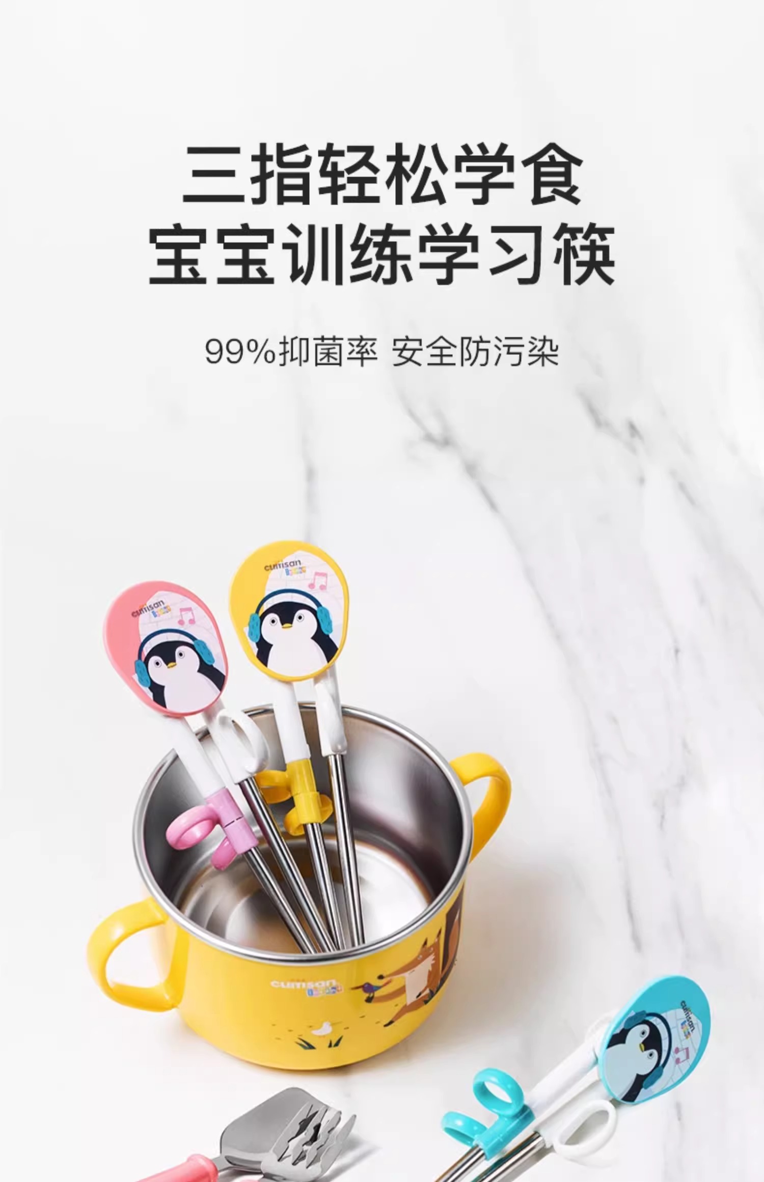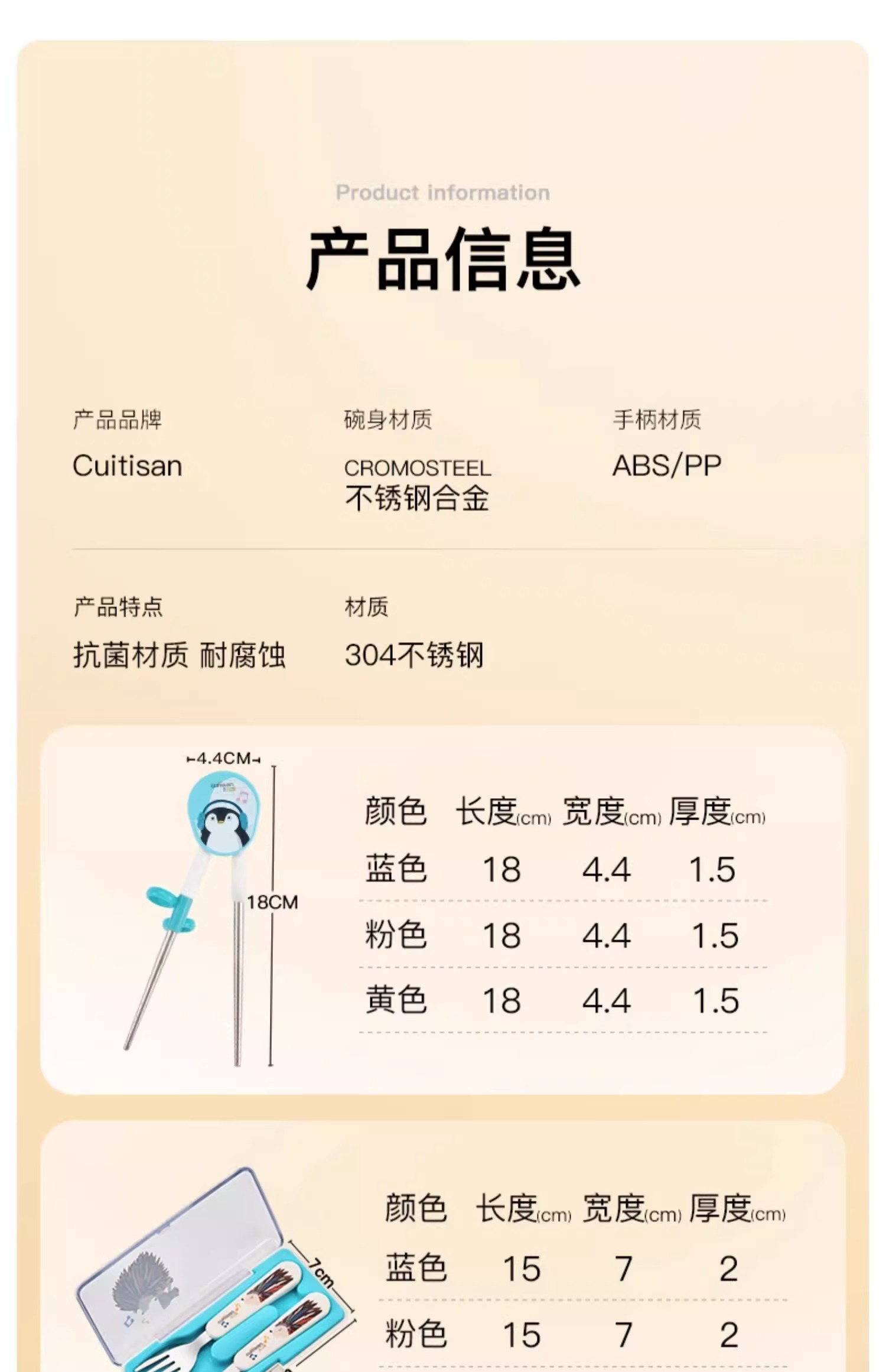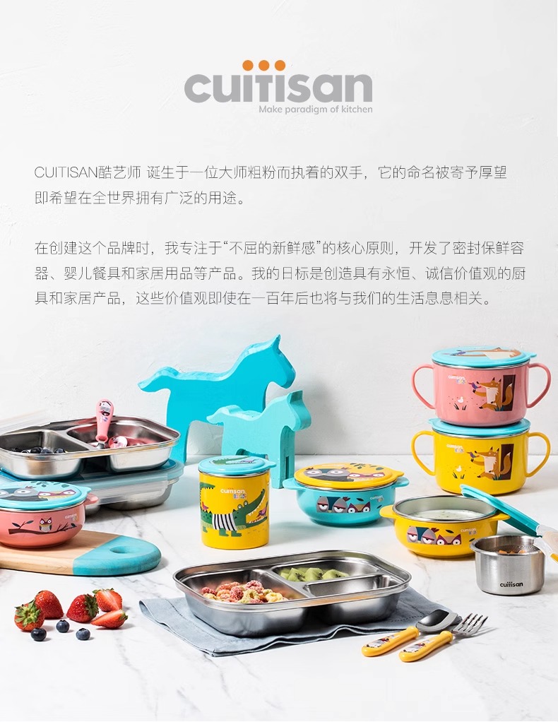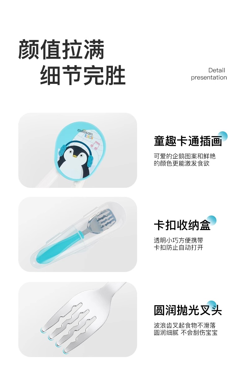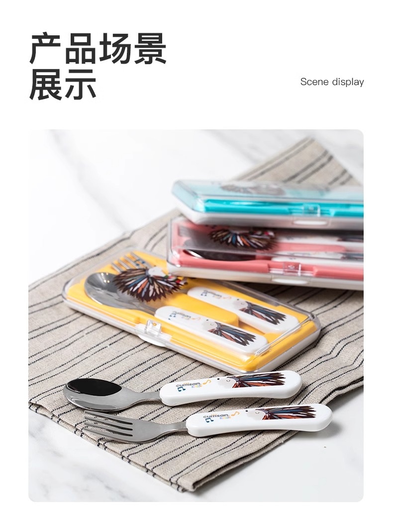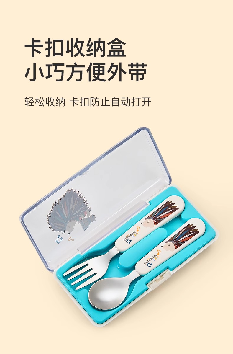 cuitisan酷艺师儿童训练筷叉勺套盒装婴幼儿餐具可爱卡通不锈钢筷酷艺师婴幼儿训练筷