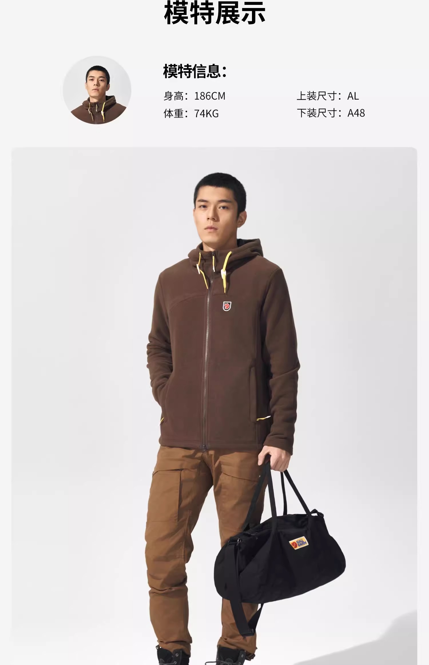 Fjallraven/北极狐秋冬男士户外保暖舒适拉链长袖连帽抓绒夹克04242187