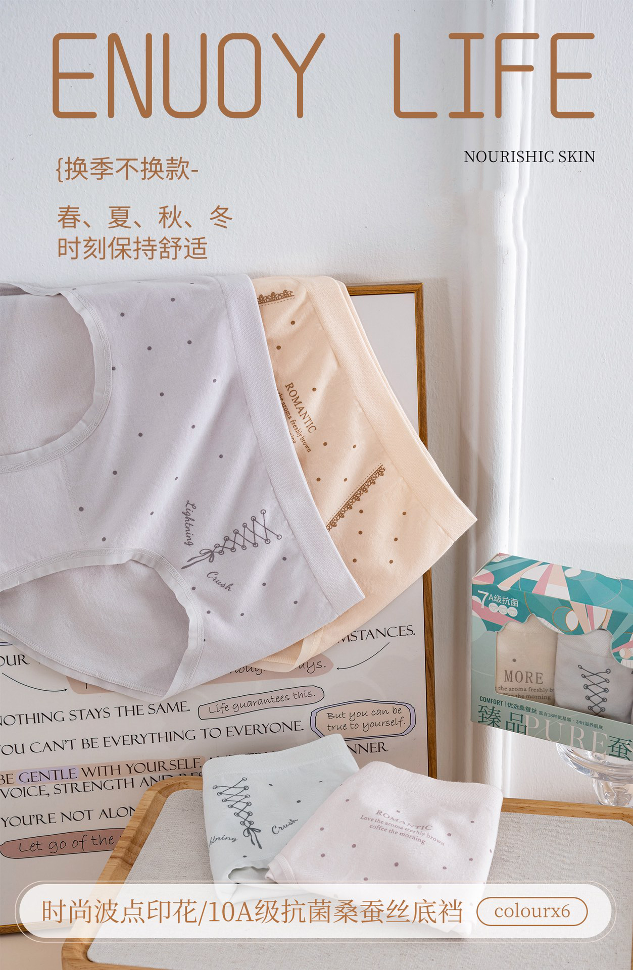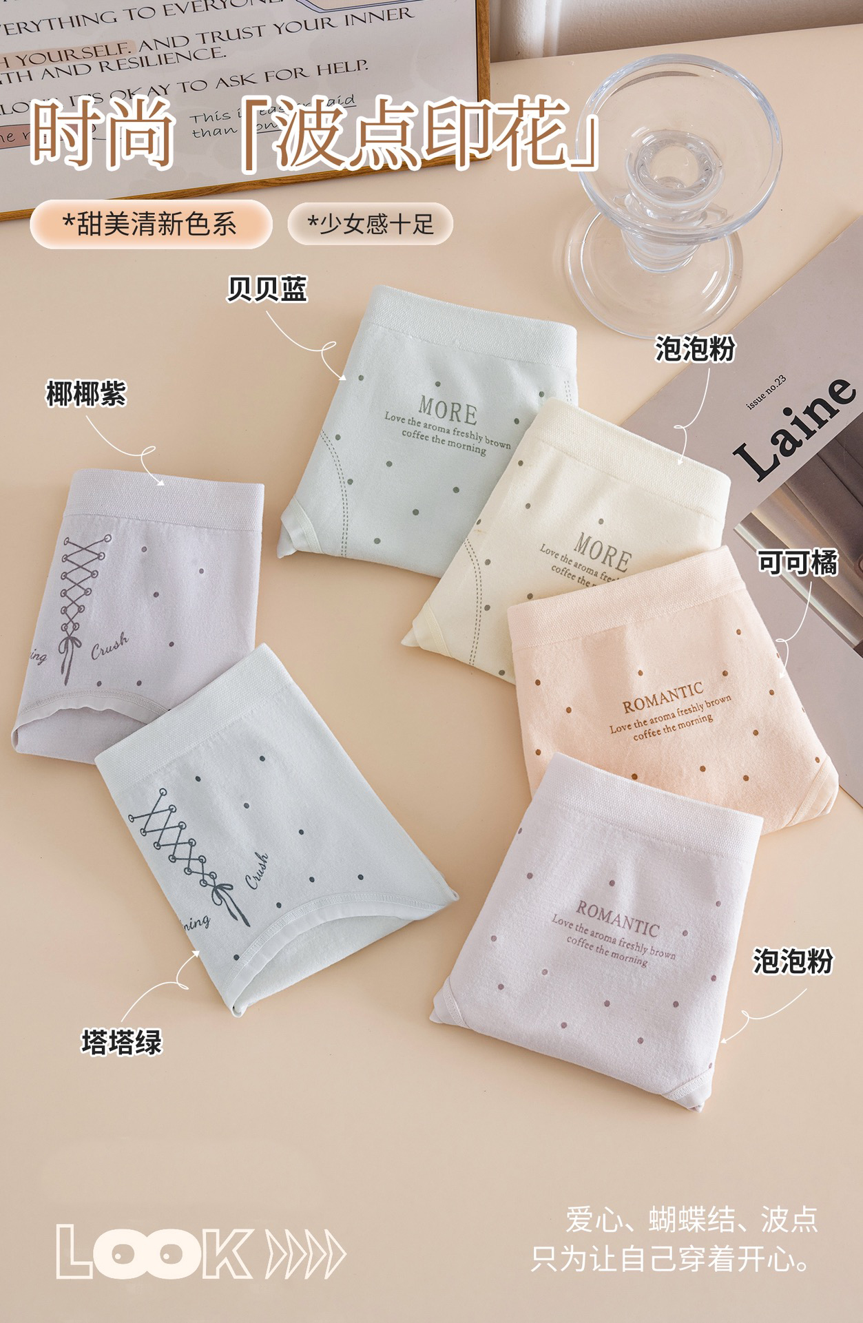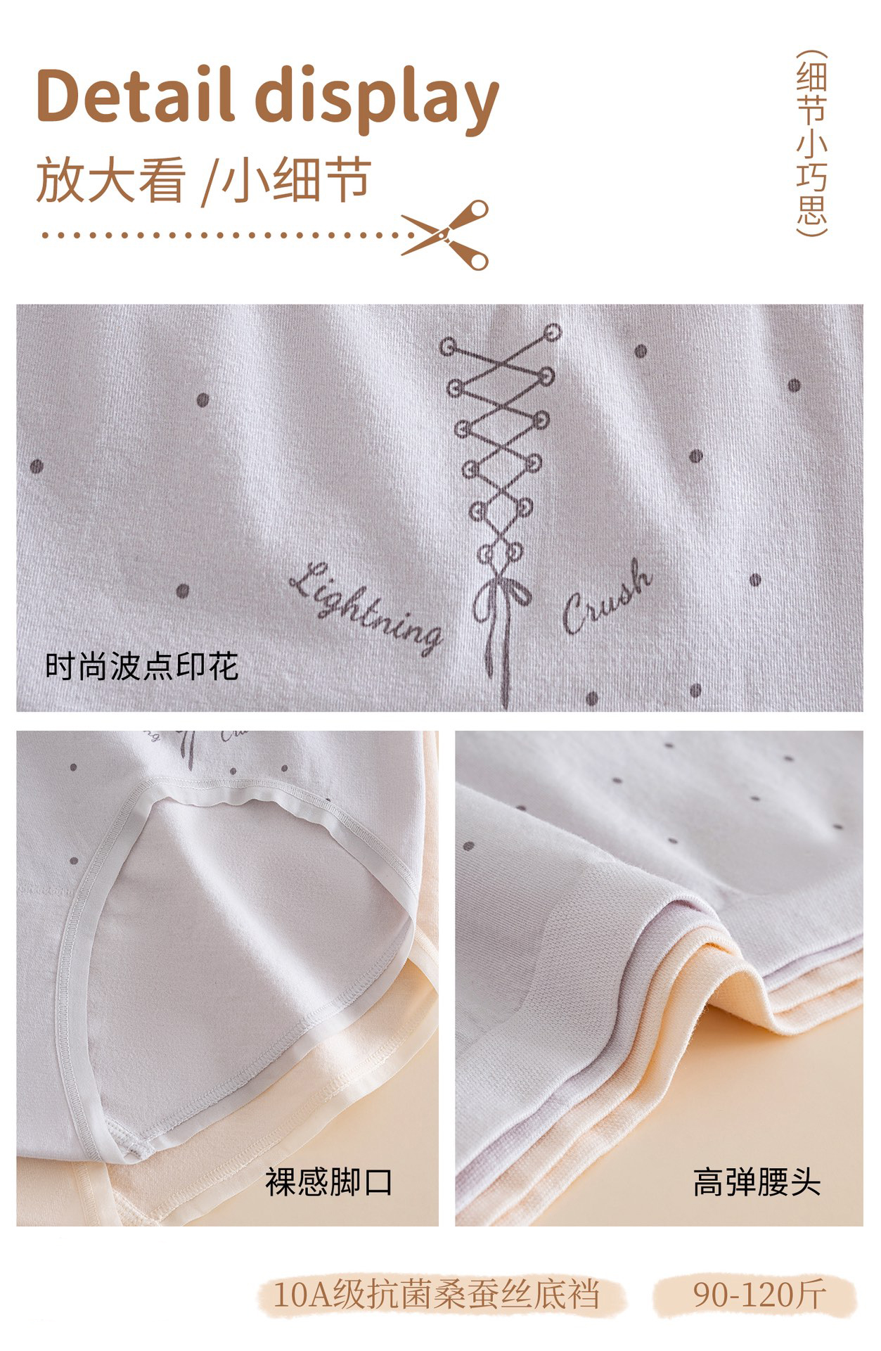 【三条装】女士慵懒小波点内裤抗菌蚕丝底裆90-120斤【CSL25267】