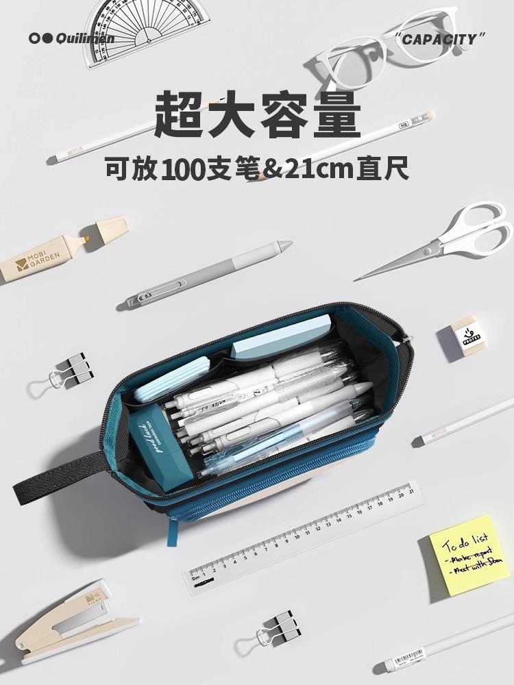大开口笔袋 小众不撞款 高颜值初高中生简约大容量文具袋 文具盒