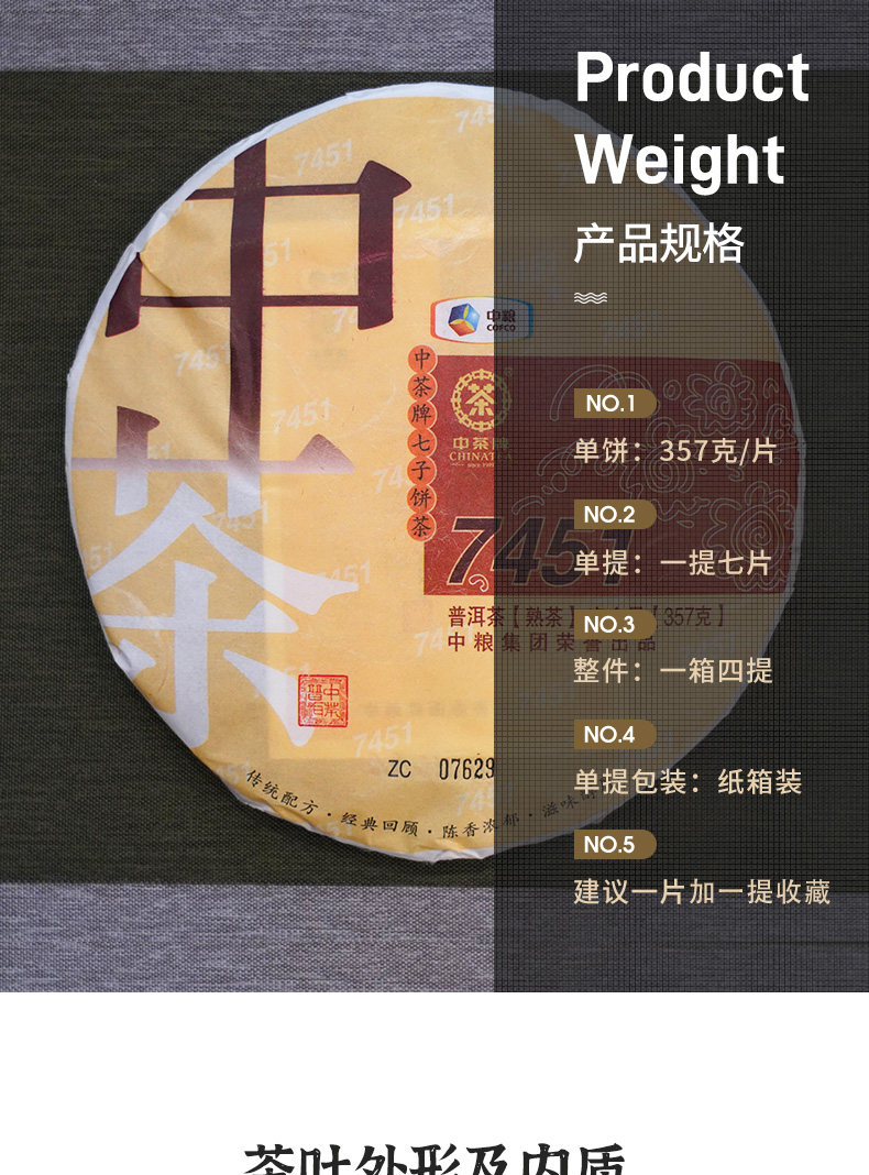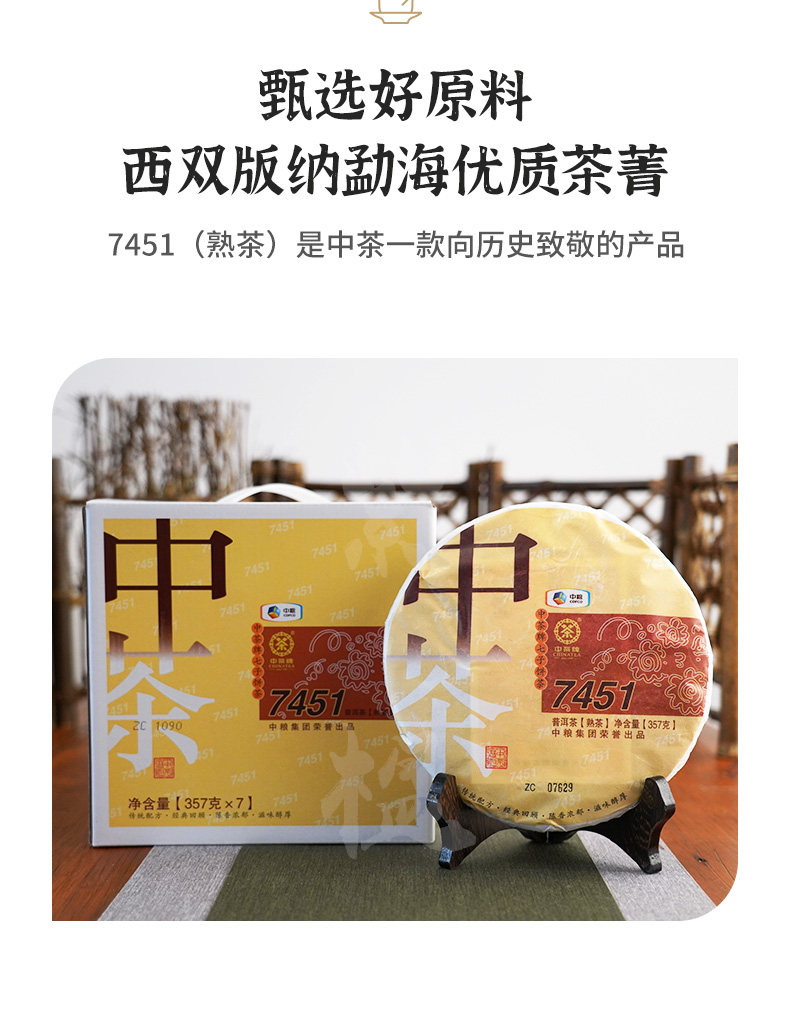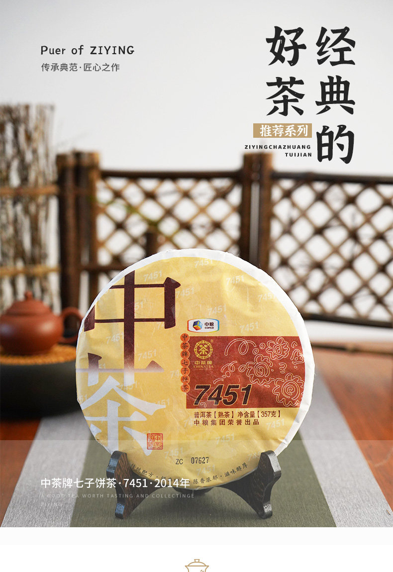 中粮-中茶 2014年7451熟茶 中茶普洱茶 普洱熟茶357/云南干仓直发