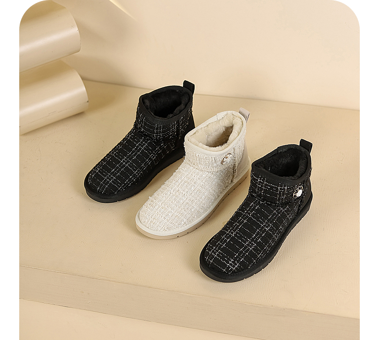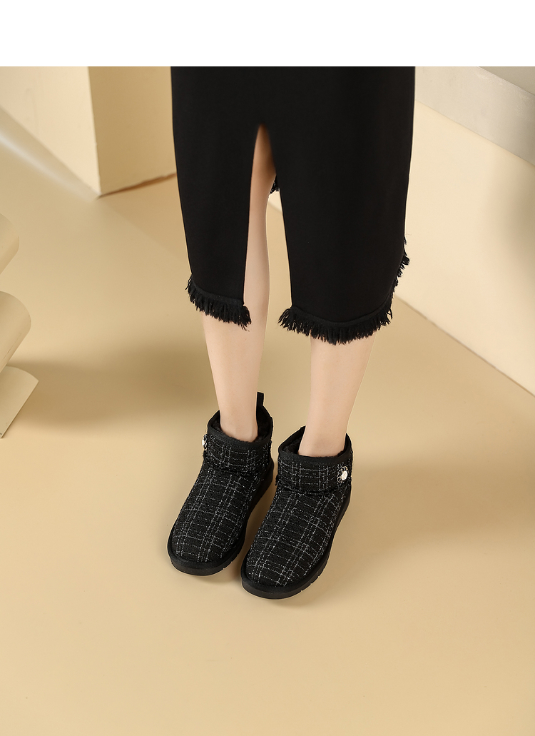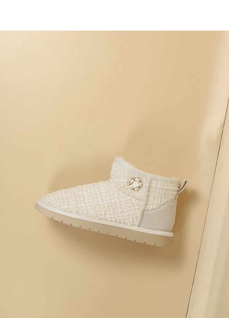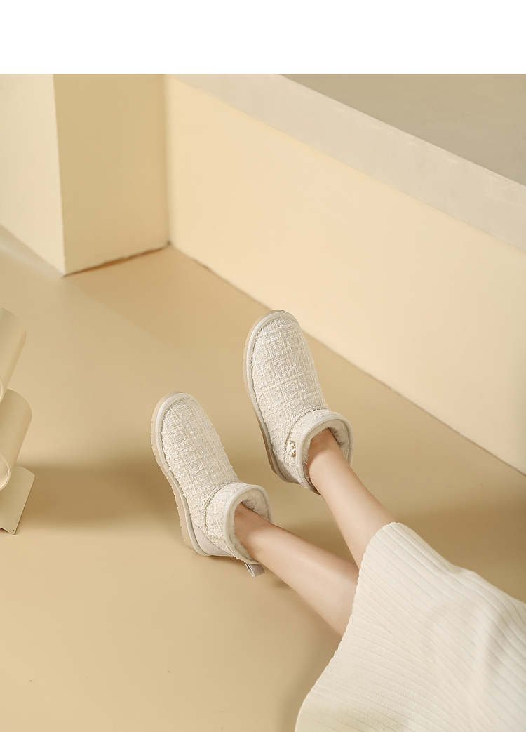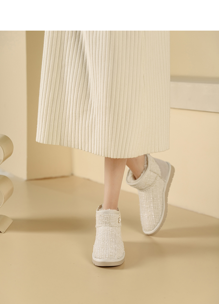 西遇小香风雪地靴女新款冬季法式毛毛短靴白色厚底加绒棉鞋V2034038