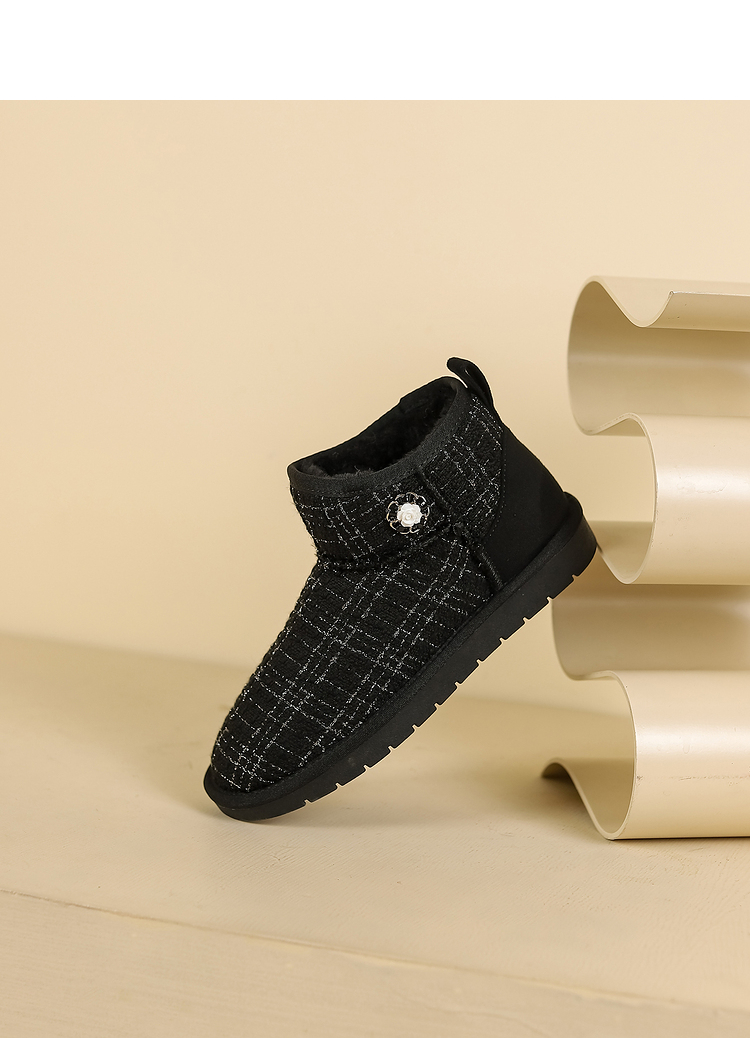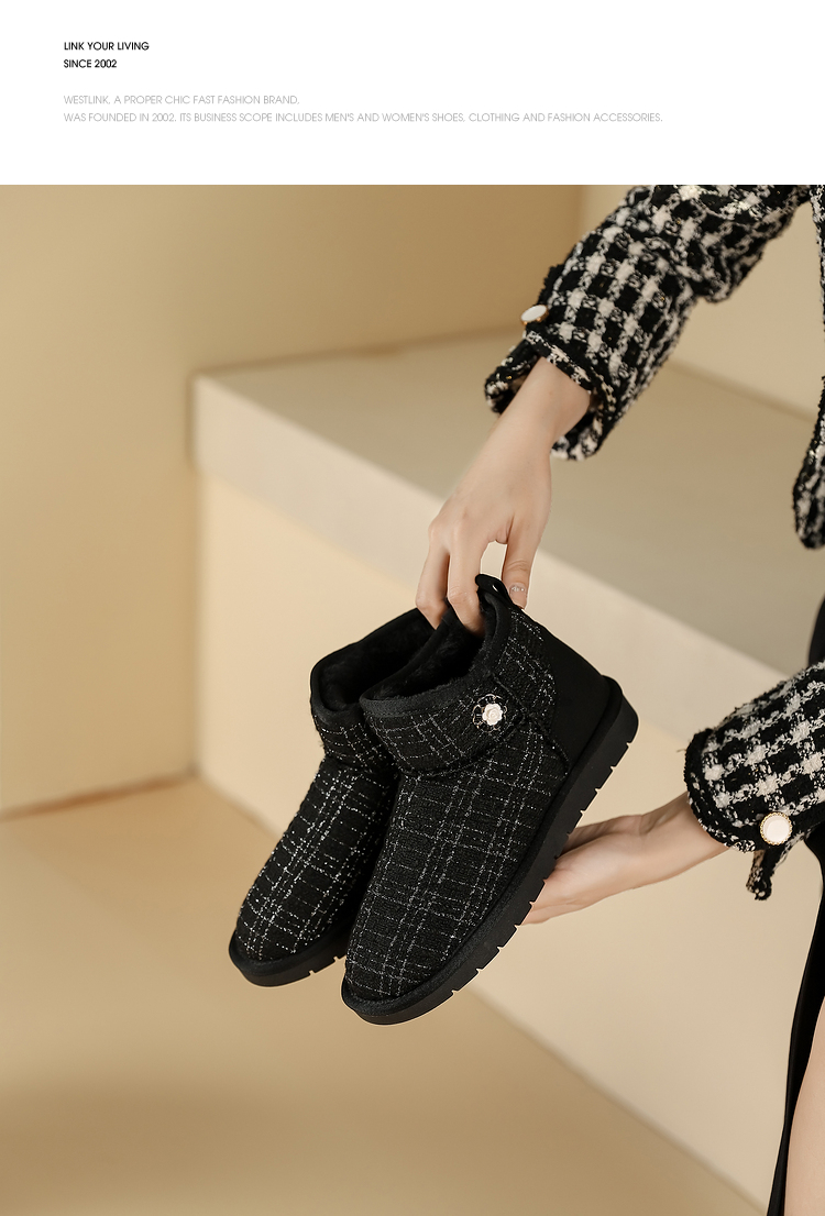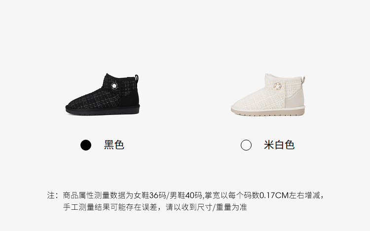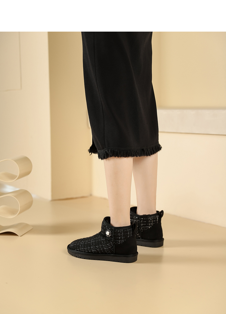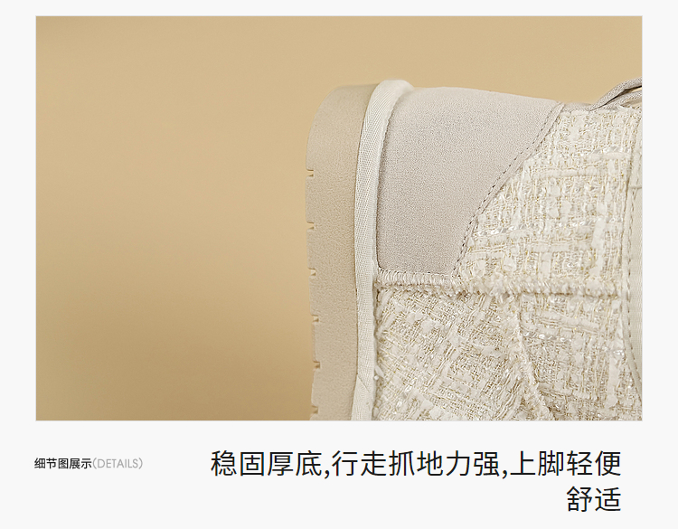 西遇小香风雪地靴女新款冬季法式毛毛短靴白色厚底加绒棉鞋V2034038