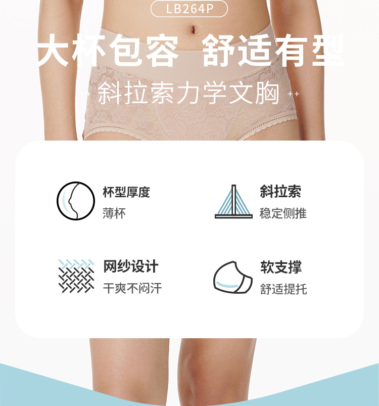 笔笔同款都市丽人自然舒适ABC杯适穿软泡芙蕾丝内衣三种厚度3/4杯常规文胸无钢圈三排扣新年本命年红品LB31M2