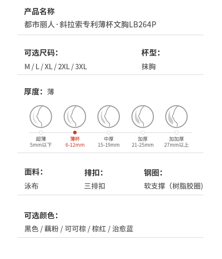 都市丽人内衣薄泳布四排扣无钢圈抹胸VBRALB264P