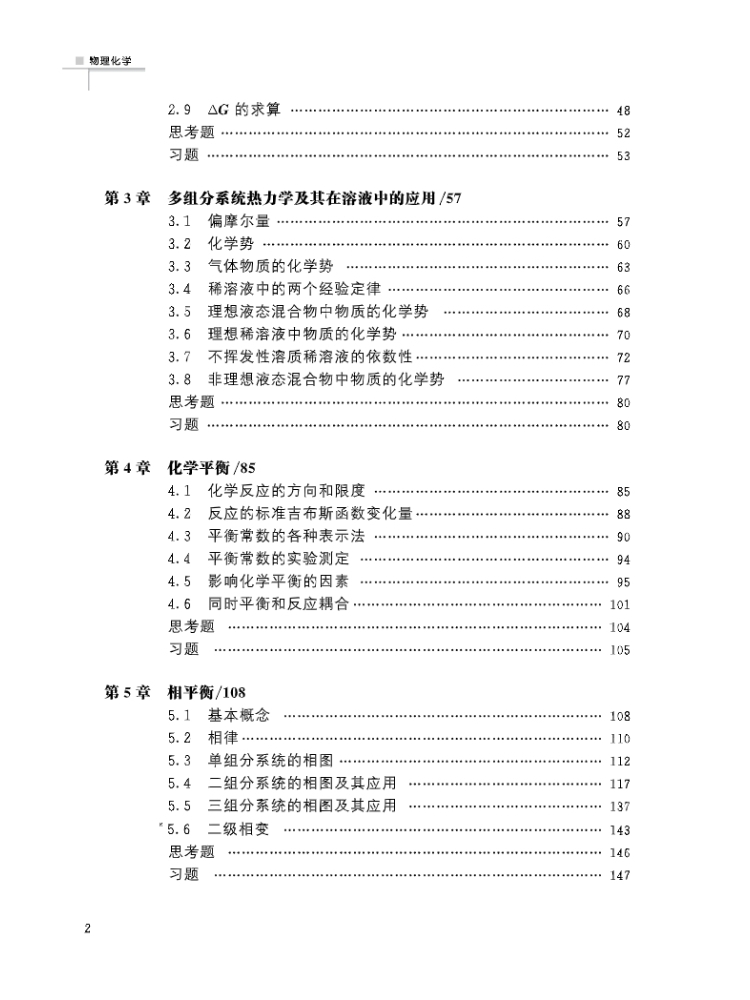 本书内容涵盖了热力学第一定律、热力学第二定律、多组分系统热力学及其在溶液中的应用、化学平衡、相平衡、统计热力学基础、电化学、界面和胶体化学、化学动力学基础 、分子反应动力学、光化学和光电化学等内容。体现了物理化学领域的新技术、新方法。