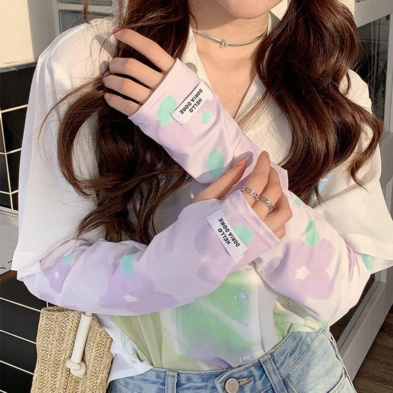 【花朵冰袖女冰丝袖】泫雅风冰袖 学生版可爱透气卡通薄款 ins夏季辣妹冰袖