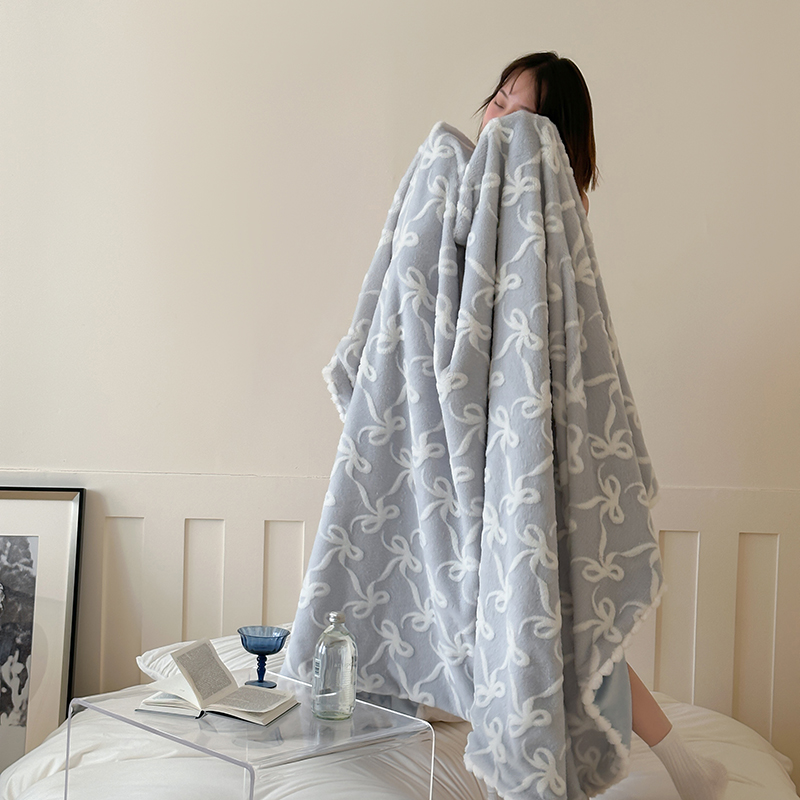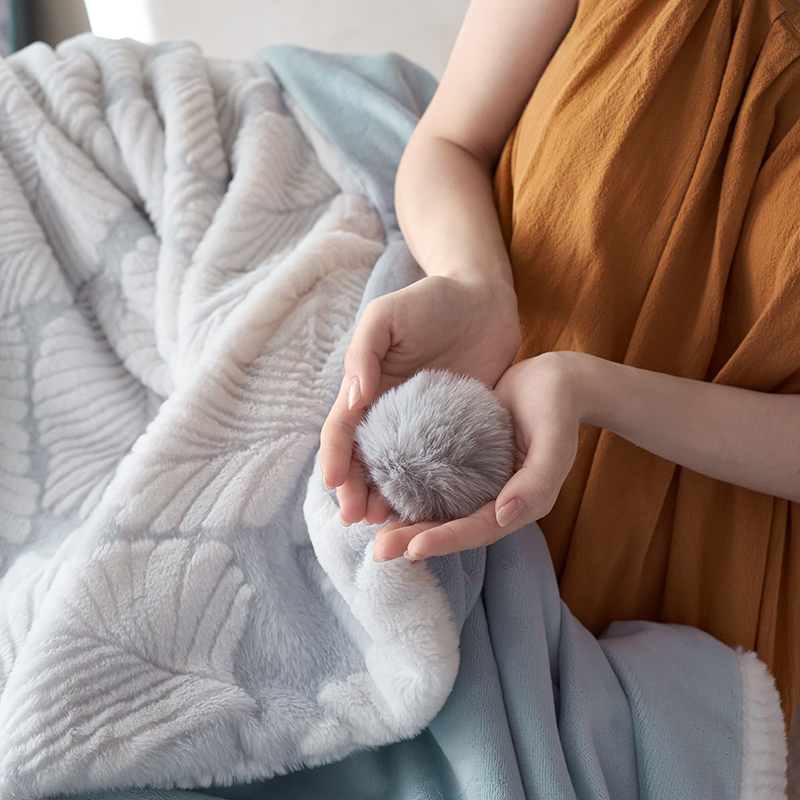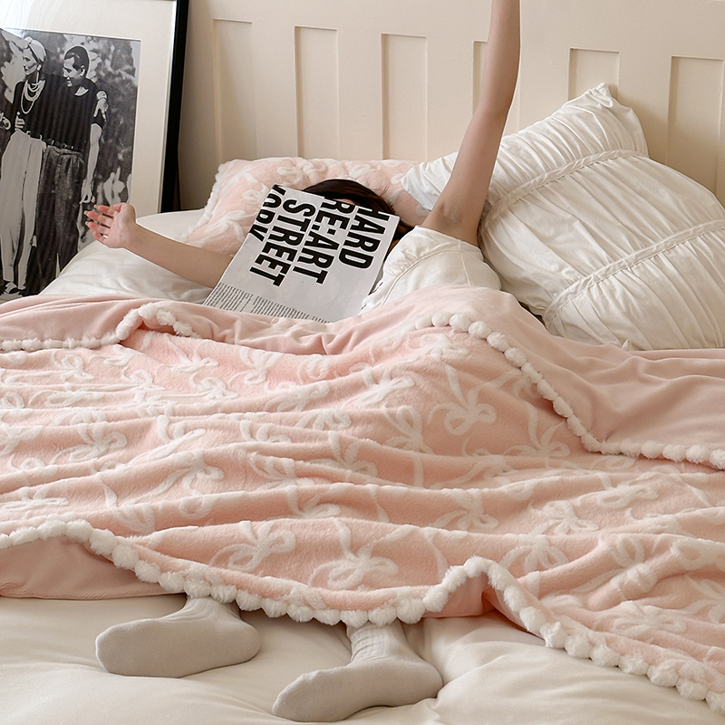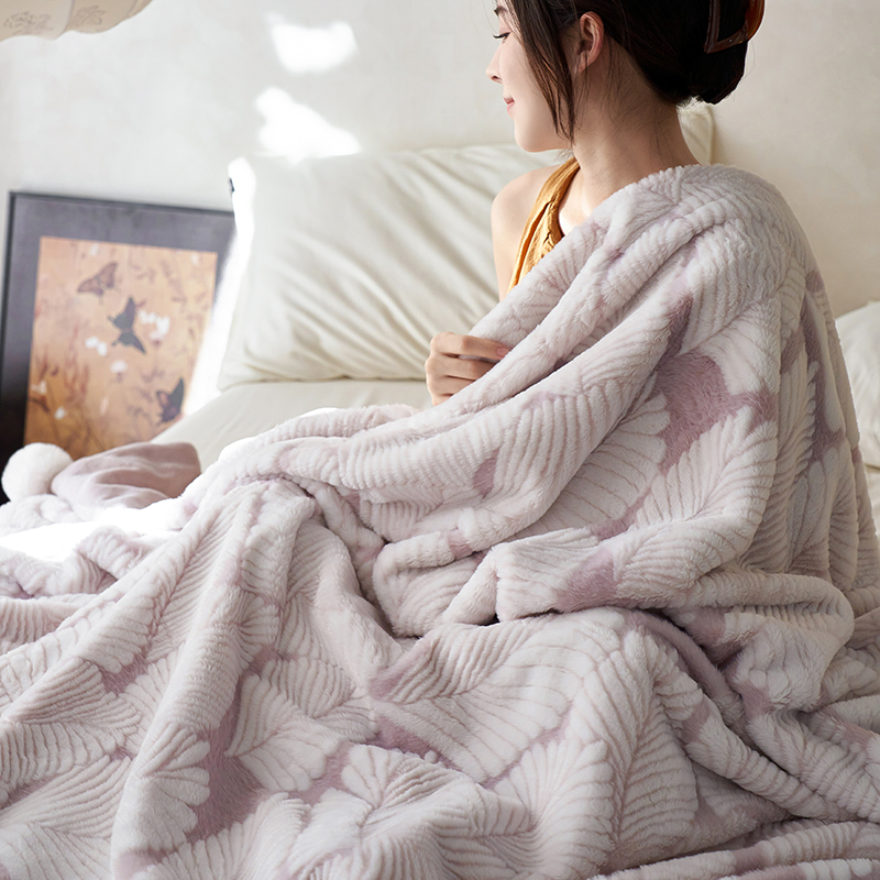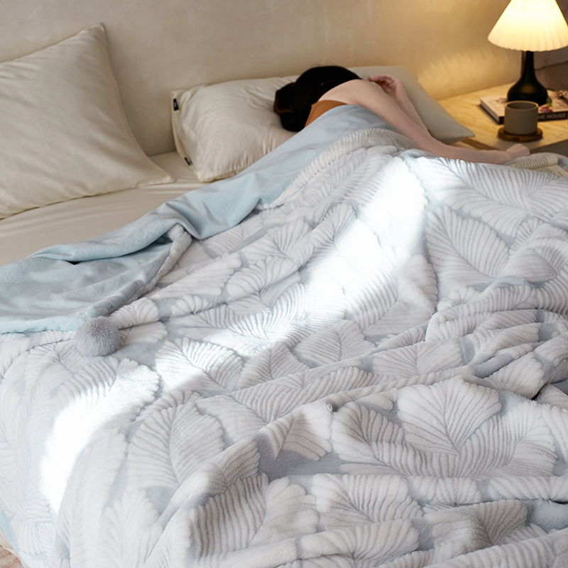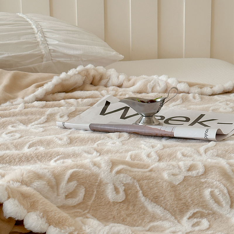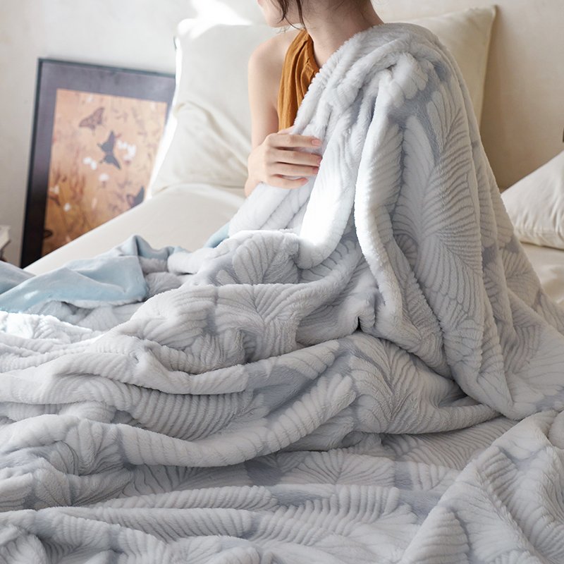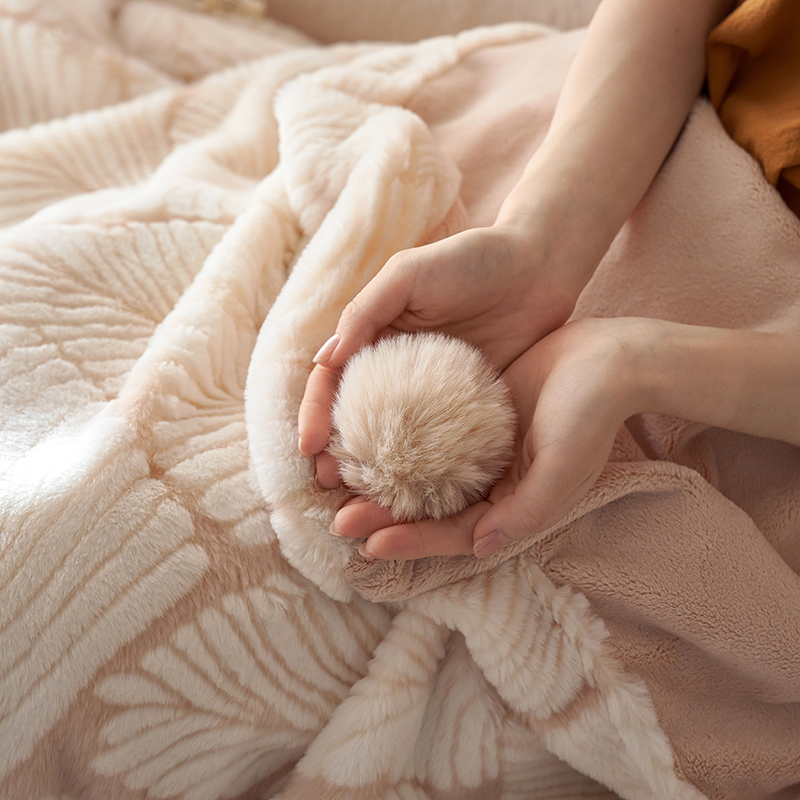 自然醒兔毛雕花绒毯秋冬季新款ins韩系绒毯牛奶绒盖毯毛毯午睡毯沙发毯公主风毯子MT