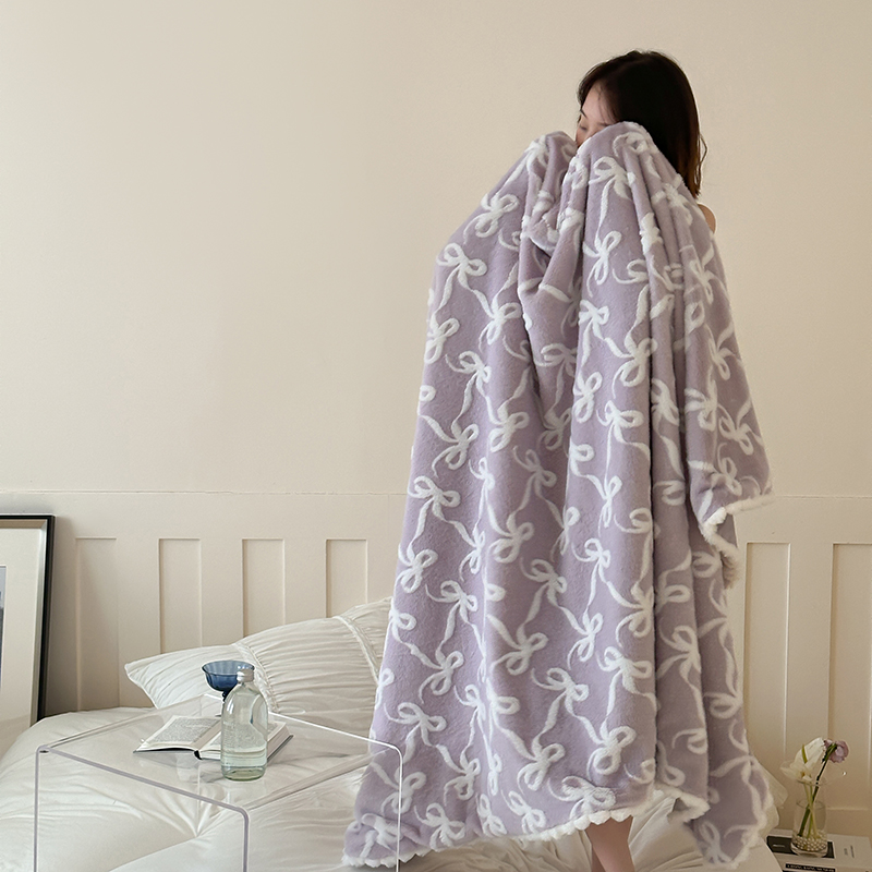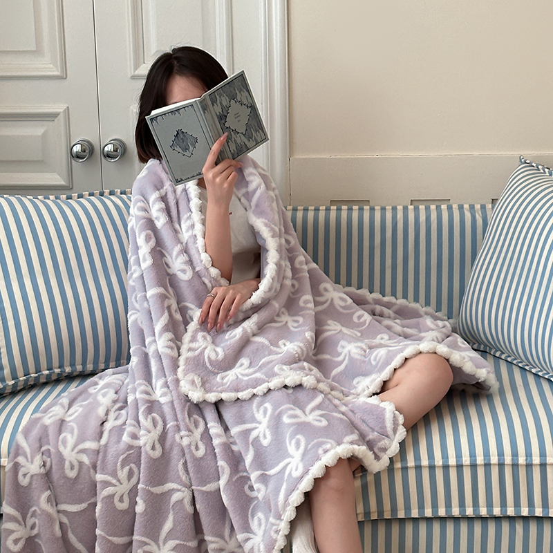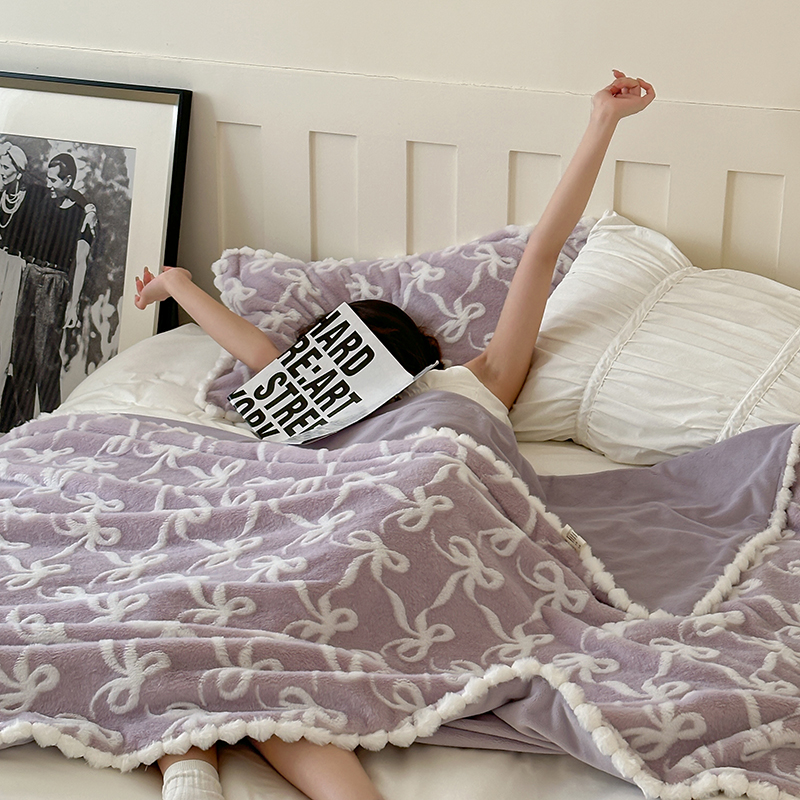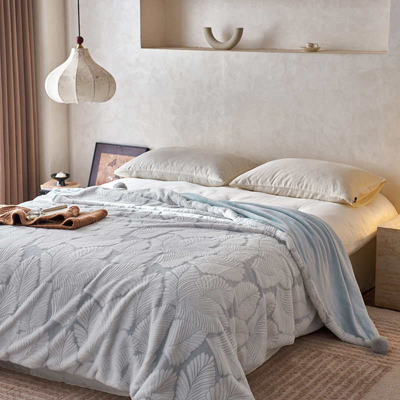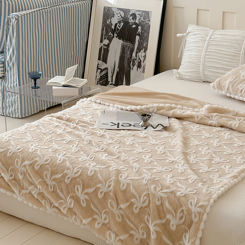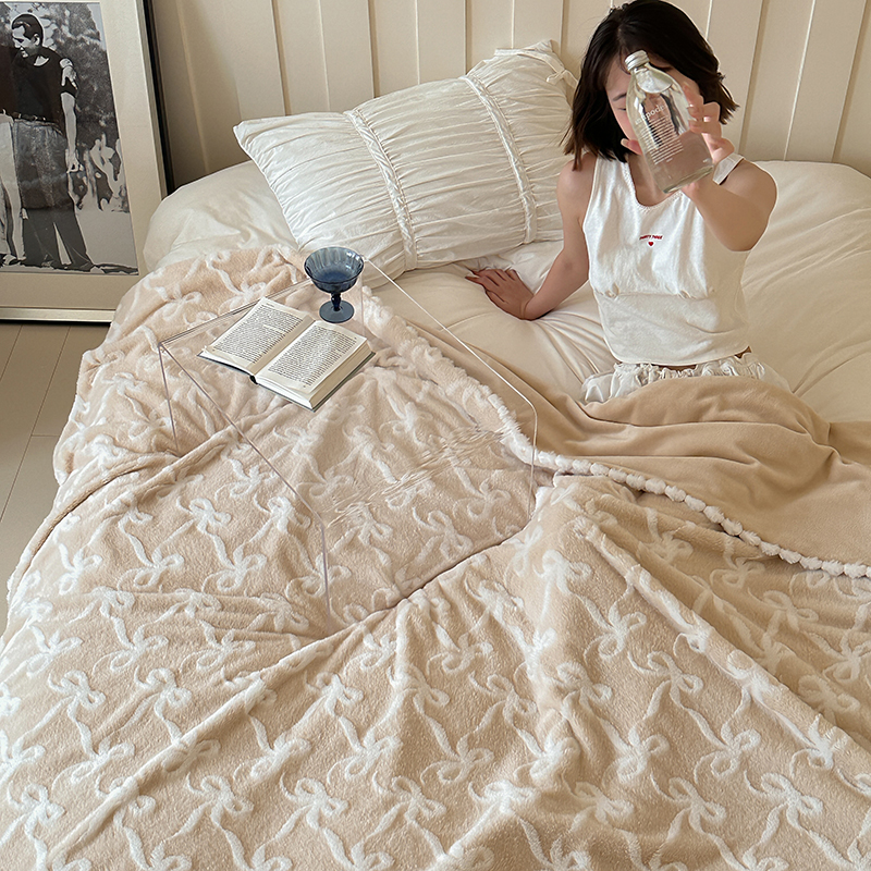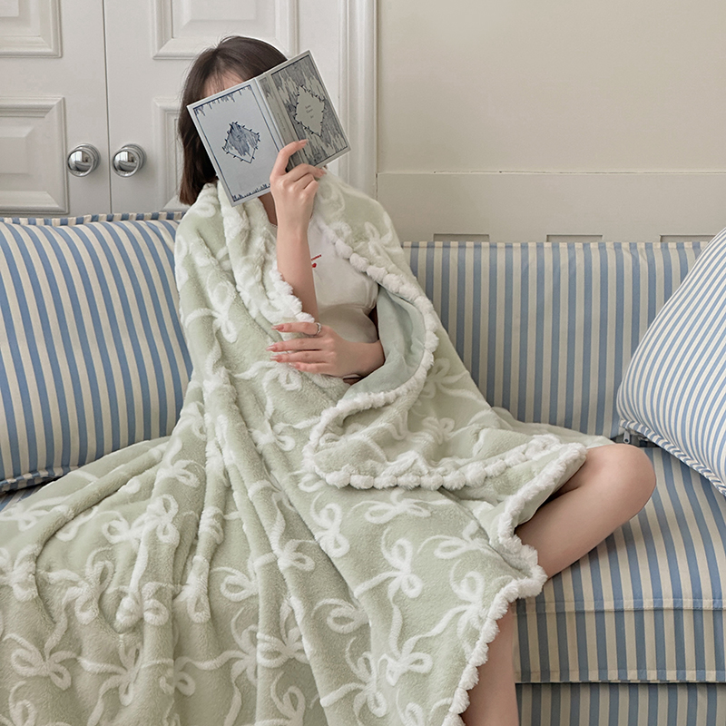自然醒兔毛雕花绒毯秋冬季新款ins韩系绒毯牛奶绒盖毯毛毯午睡毯沙发毯公主风毯子MT