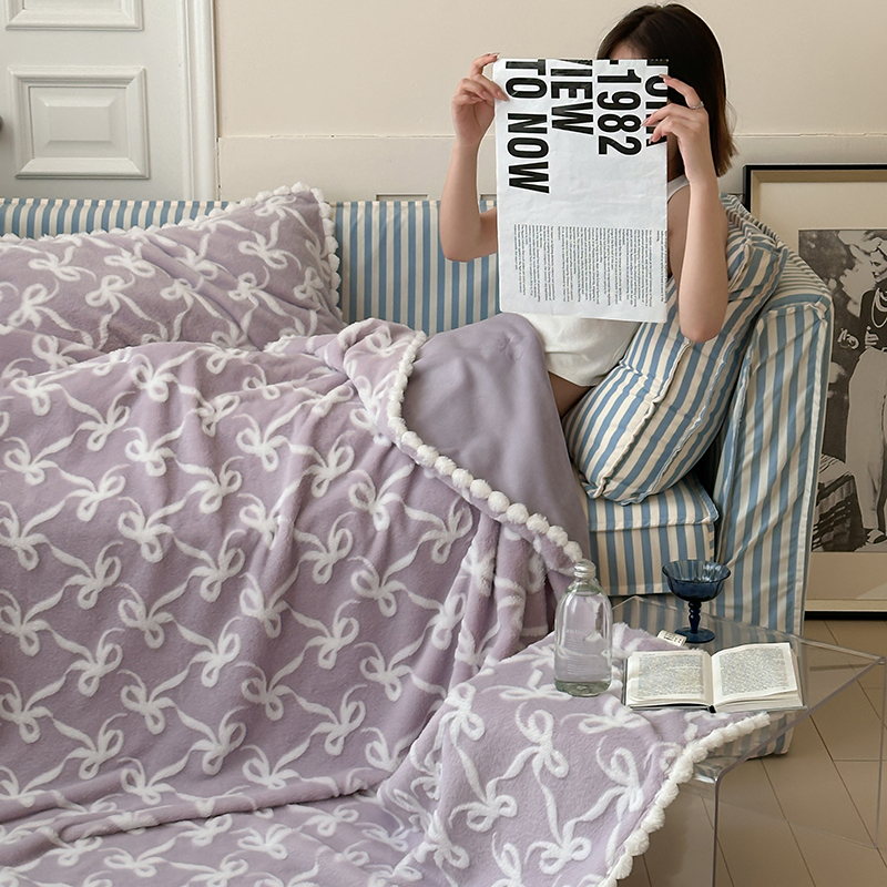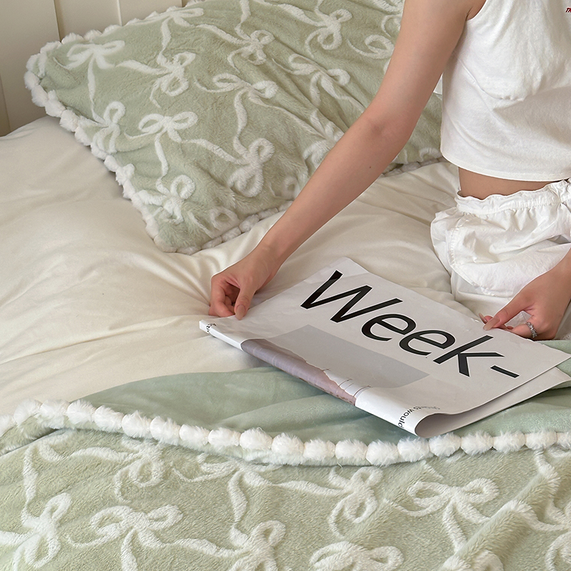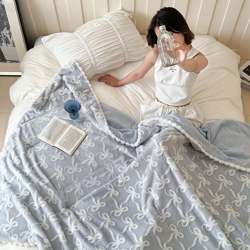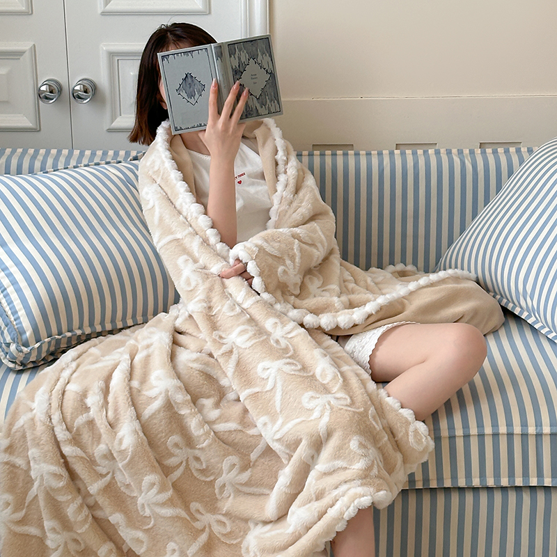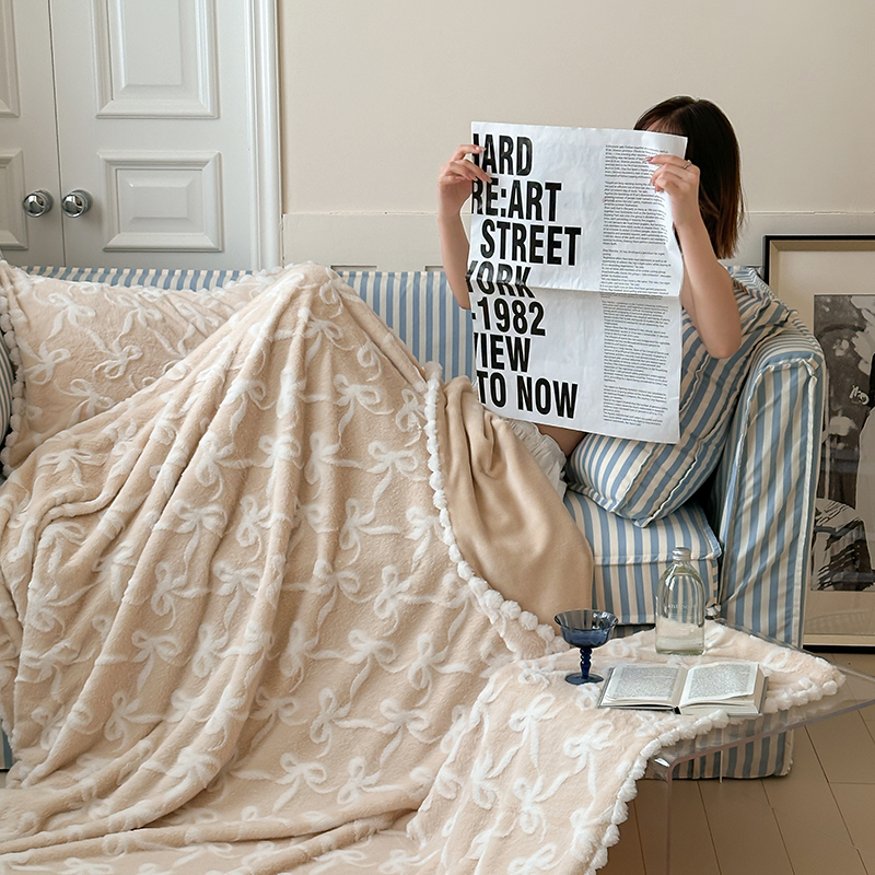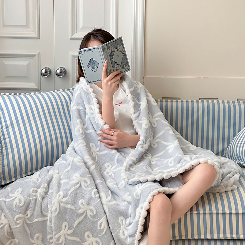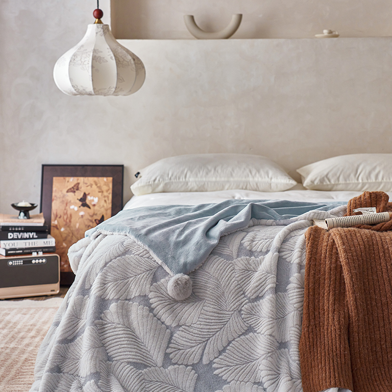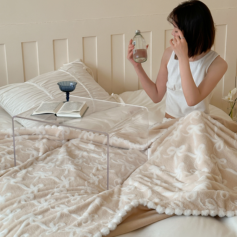 自然醒兔毛雕花绒毯秋冬季新款ins韩系绒毯牛奶绒盖毯毛毯午睡毯沙发毯公主风毯子MT