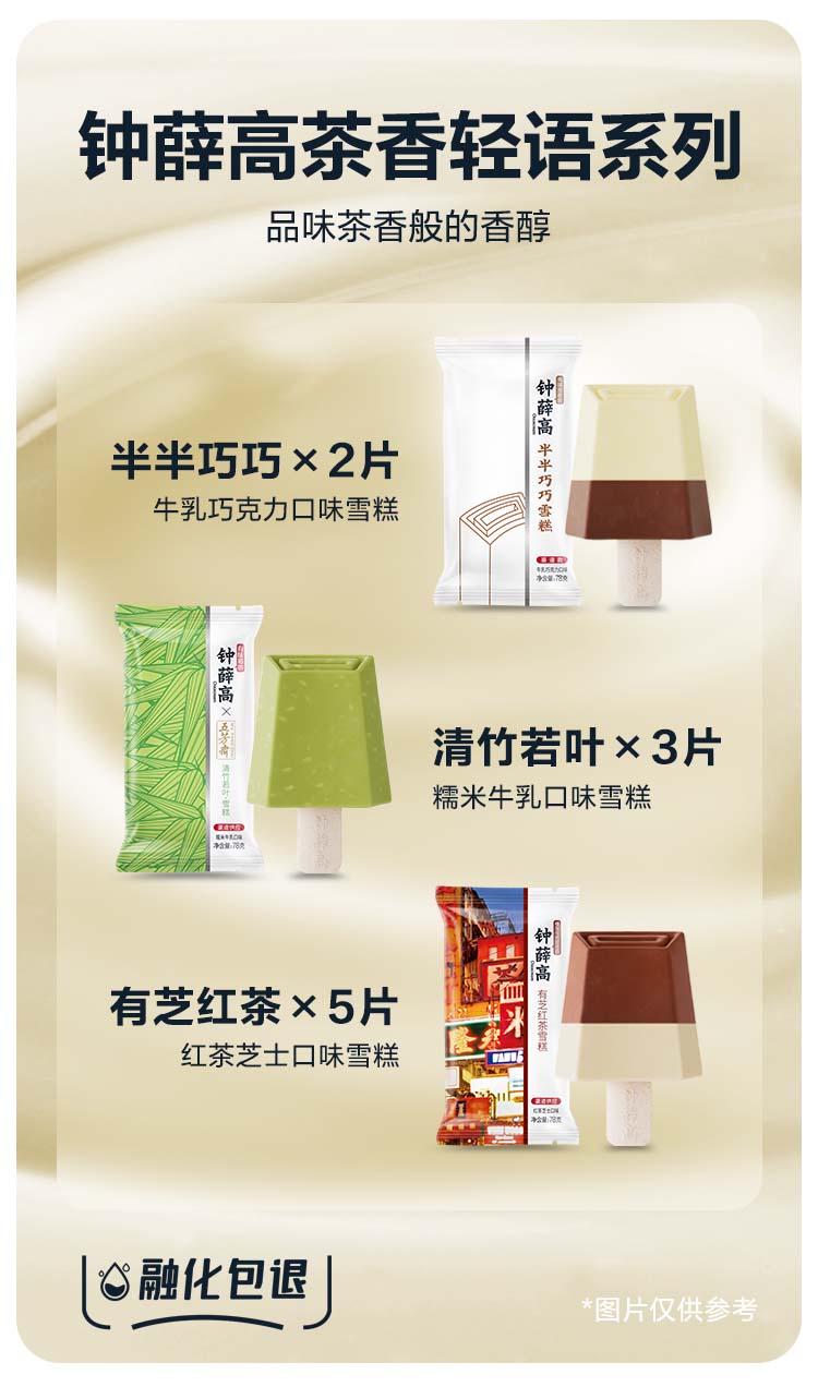 已下架】钟薛高 茶香轻语系列 半半巧巧*2清竹若叶*3有芝红茶*5 雪糕冰淇淋[福利品]