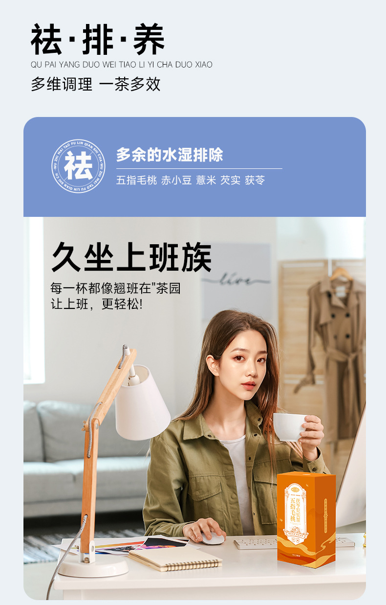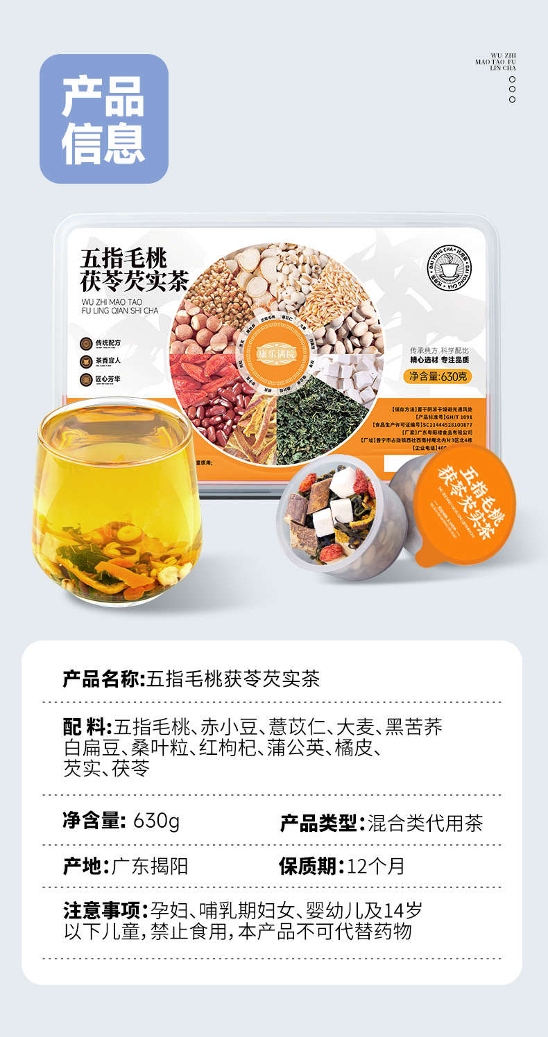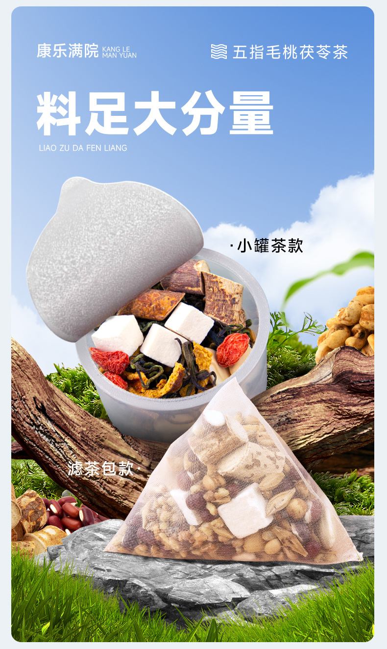 五指毛桃茯苓小罐茶30小罐630克驱湿养生茶12道原料组合花茶