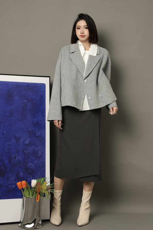 LNNNS 高级灰廓形短款双面呢大衣 16707