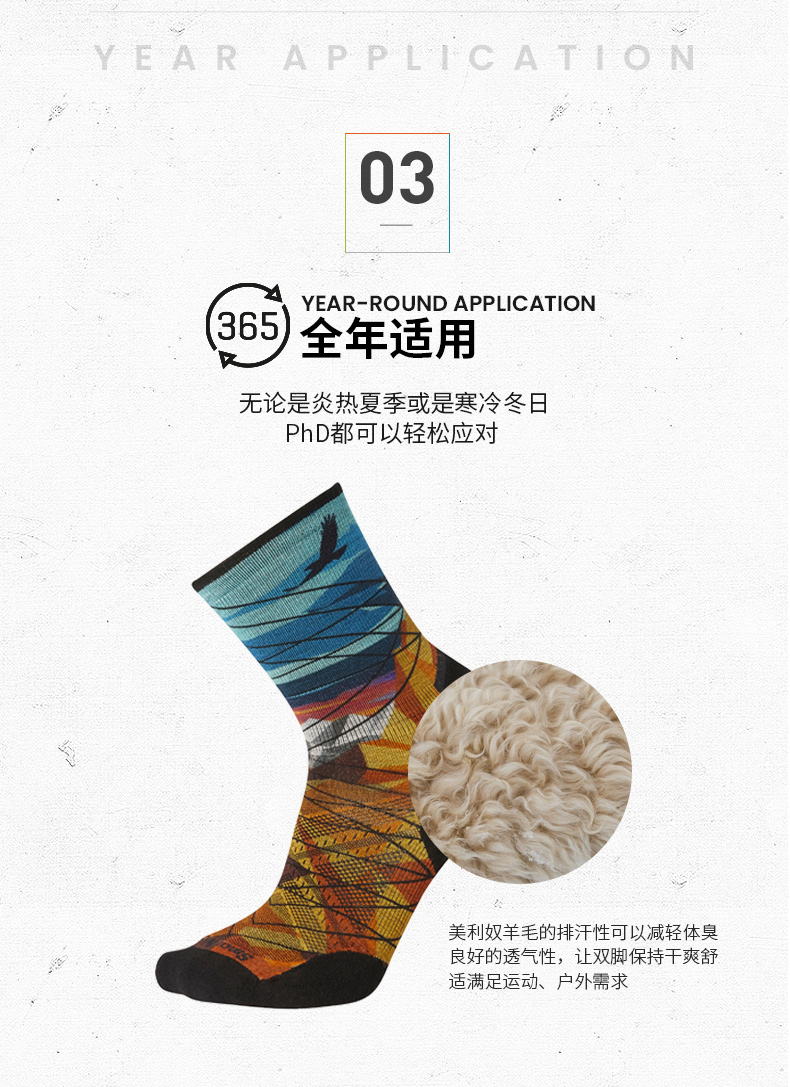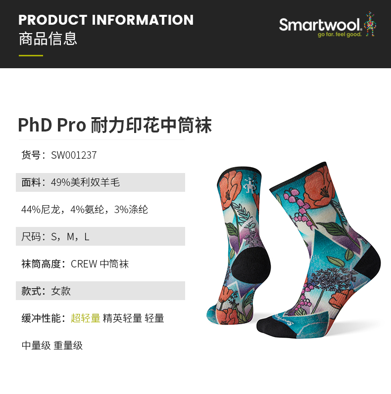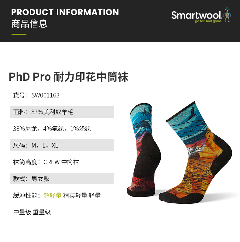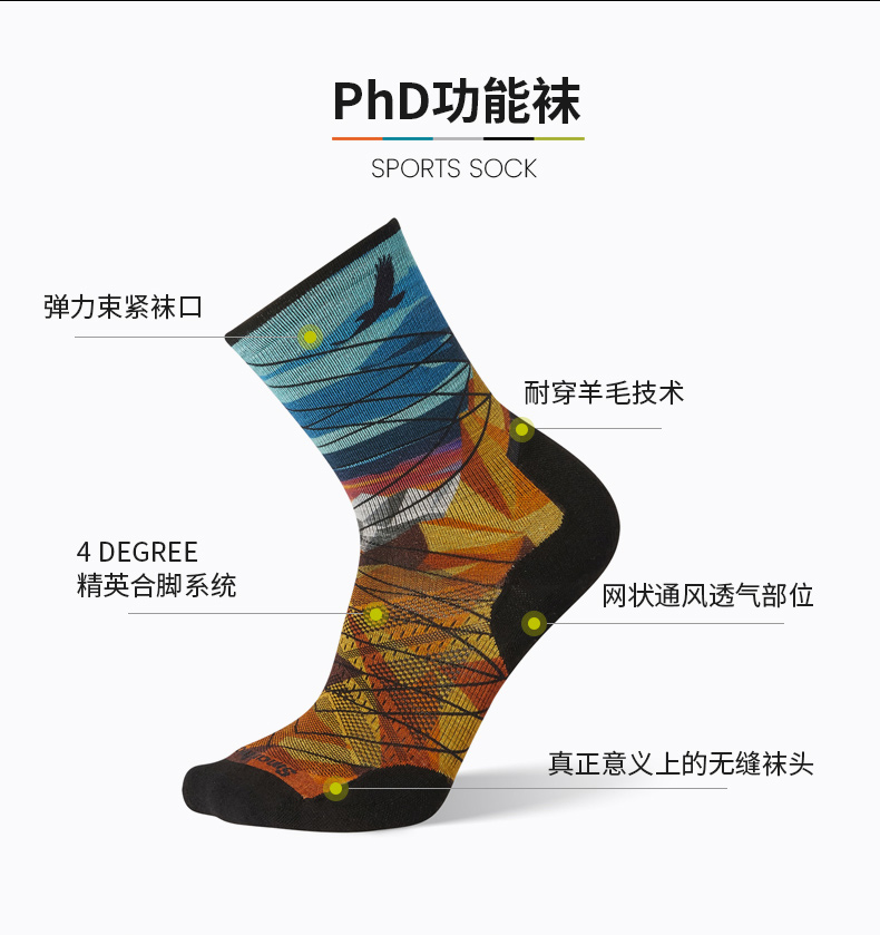Smartwool PhD Pro 耐力印花羊毛中筒袜