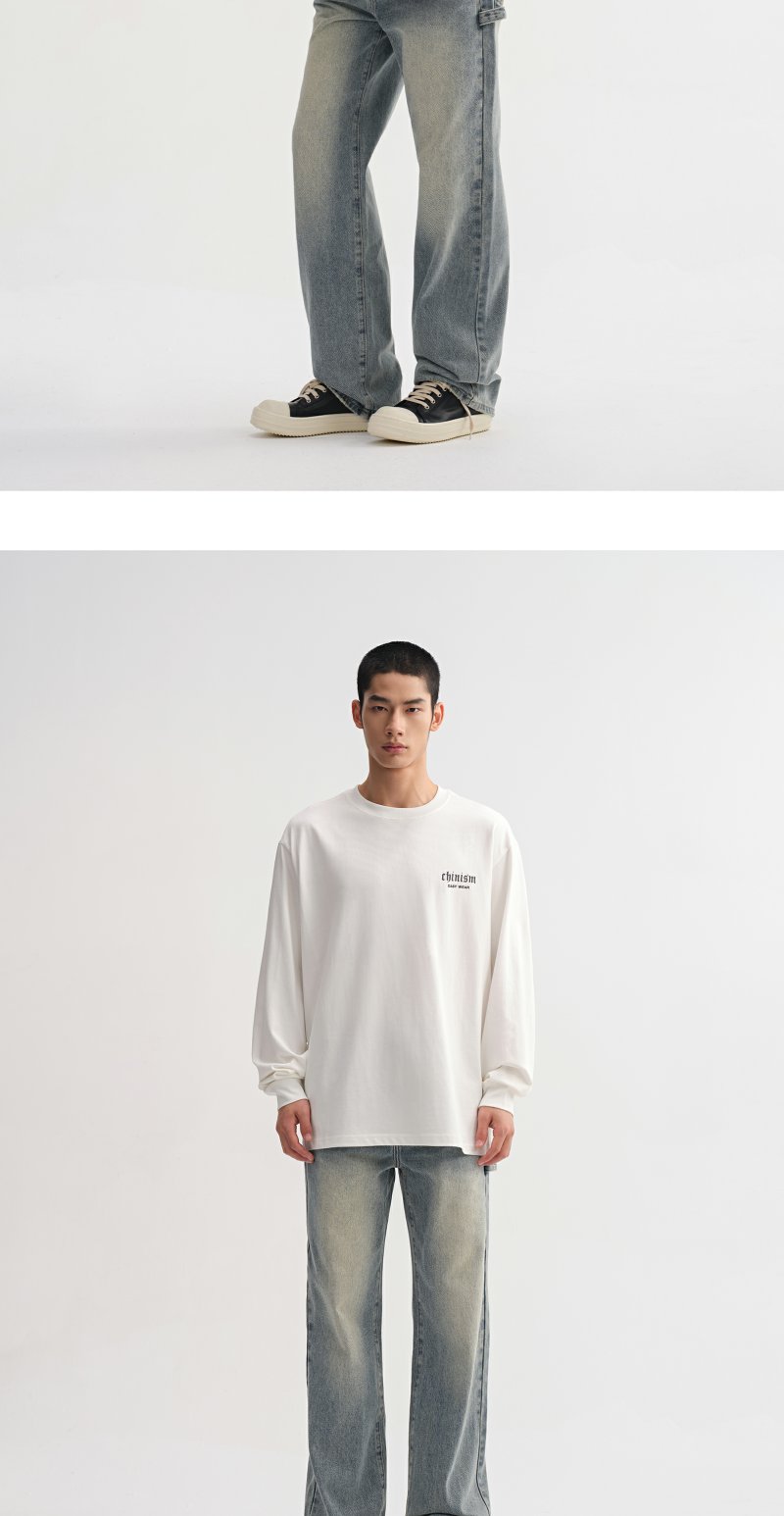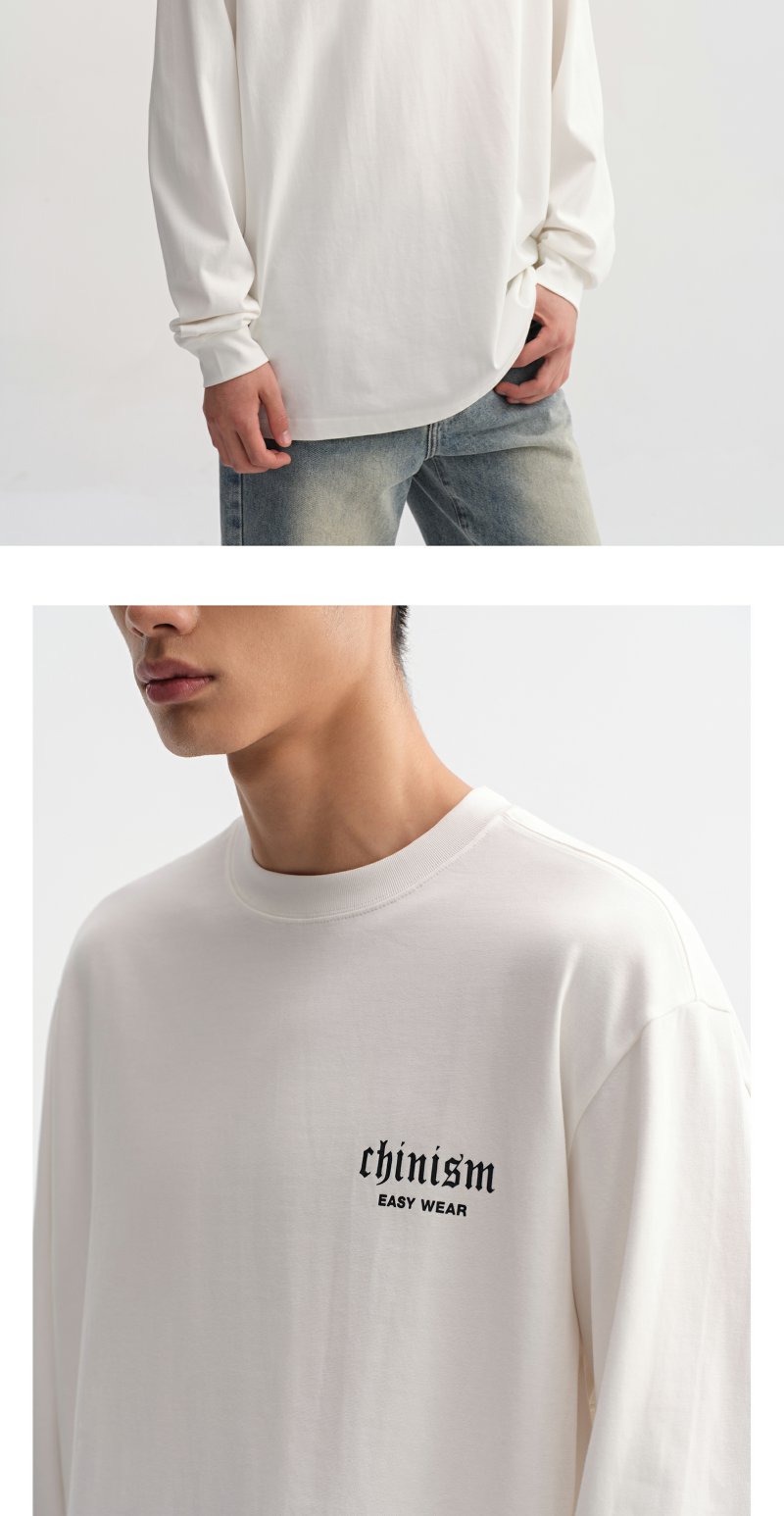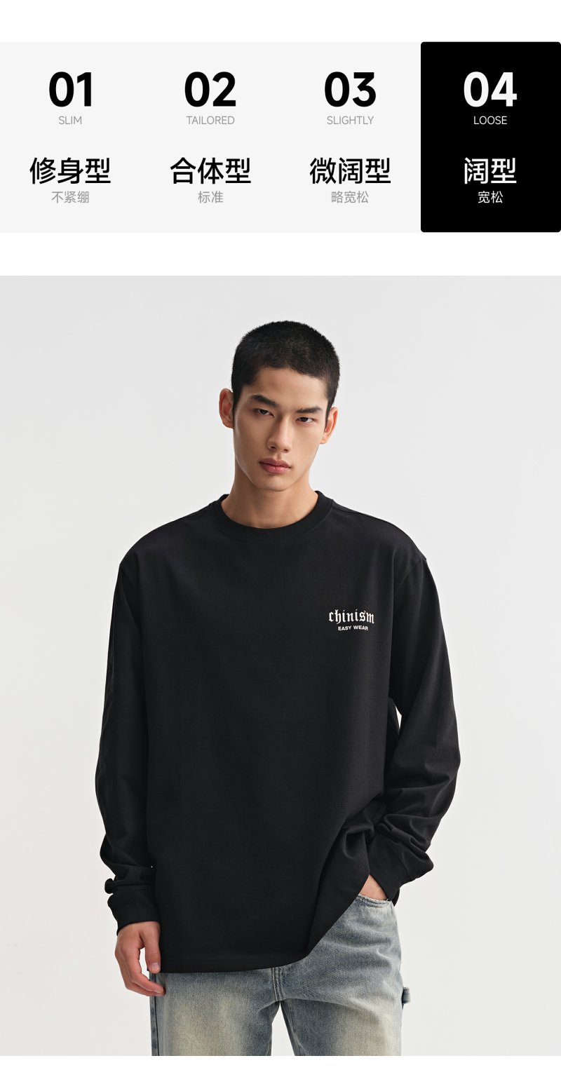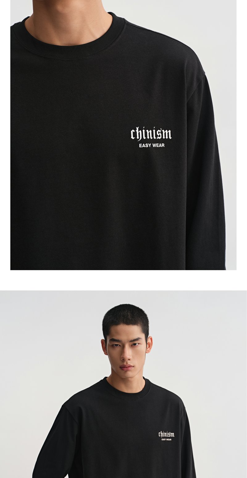 CHINISM赤尘 纯棉logo印花长袖T恤男秋季宽松圆领上衣美式打底衫