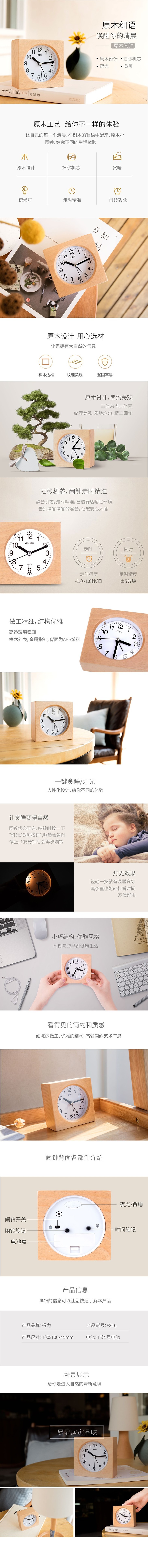得力闹钟8816木纹(4寸)