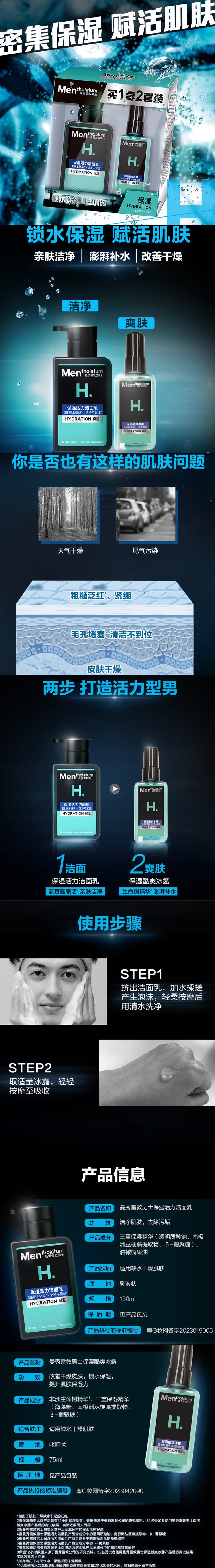 曼秀雷敦男士 保湿活力洁面乳150ml+保湿酷爽冰露75ml