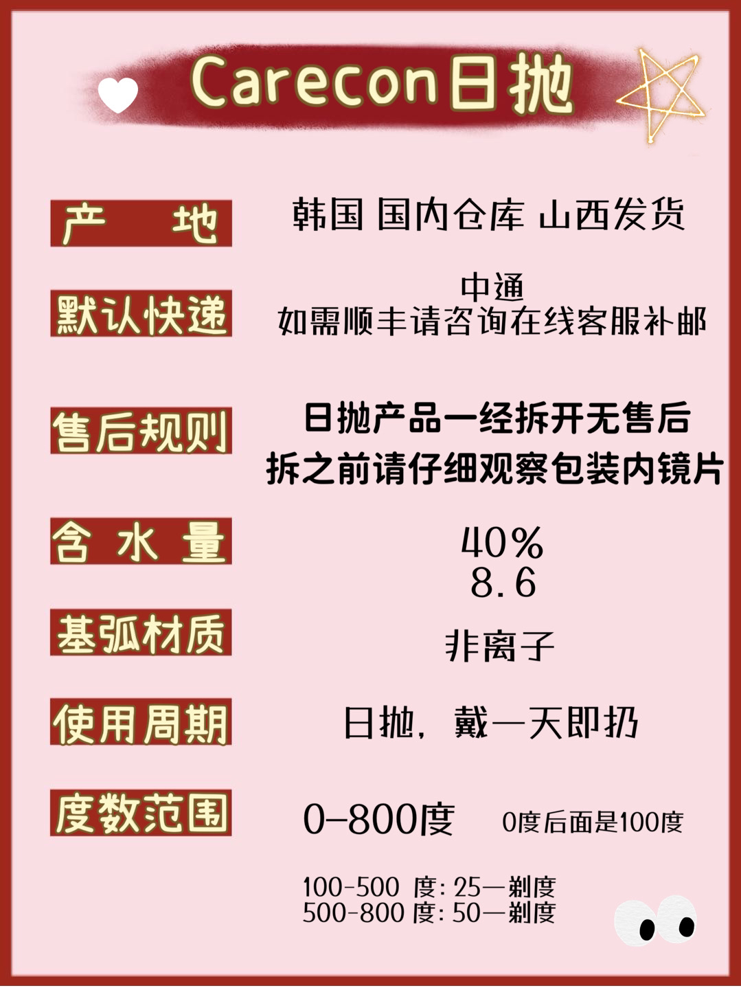 日抛活动色板 carecon全系列/ (同品牌多盒更划算 完整选款色板在详情页里哟)