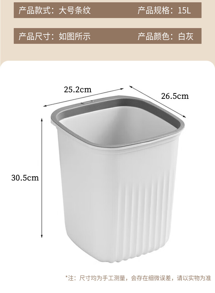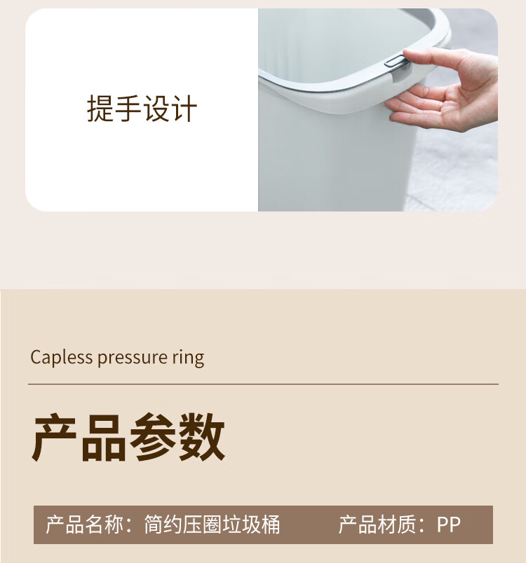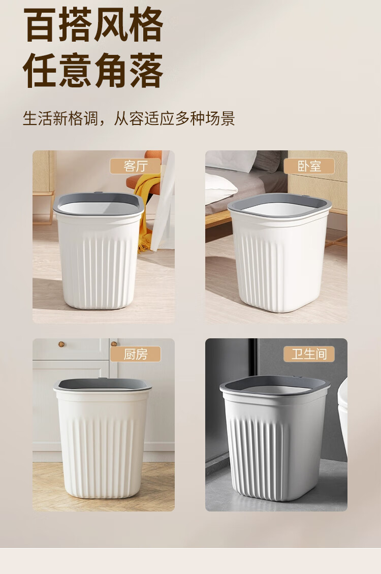 柏图佳15L压圈垃圾桶大号客厅厨房卫生间办公室家用大容量纸篓垃圾筒 100055962974