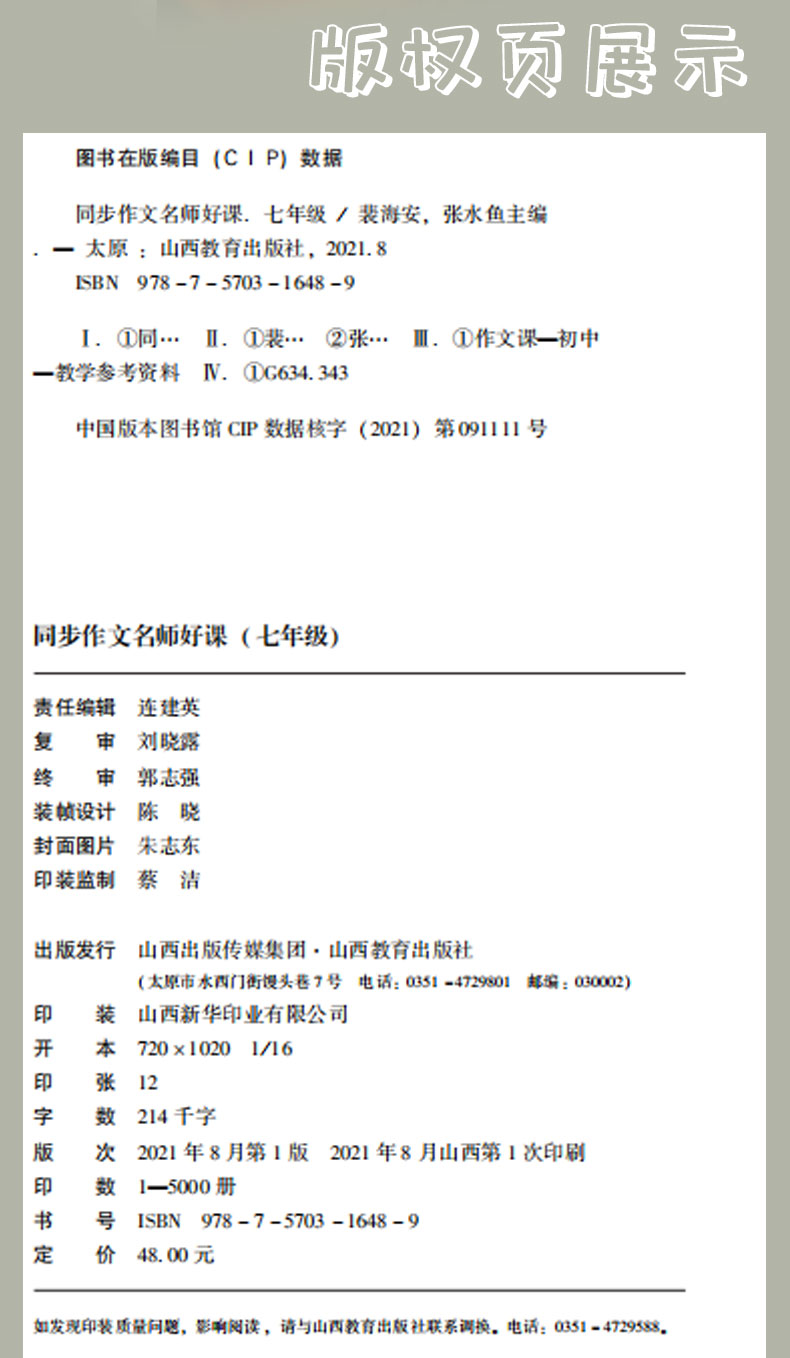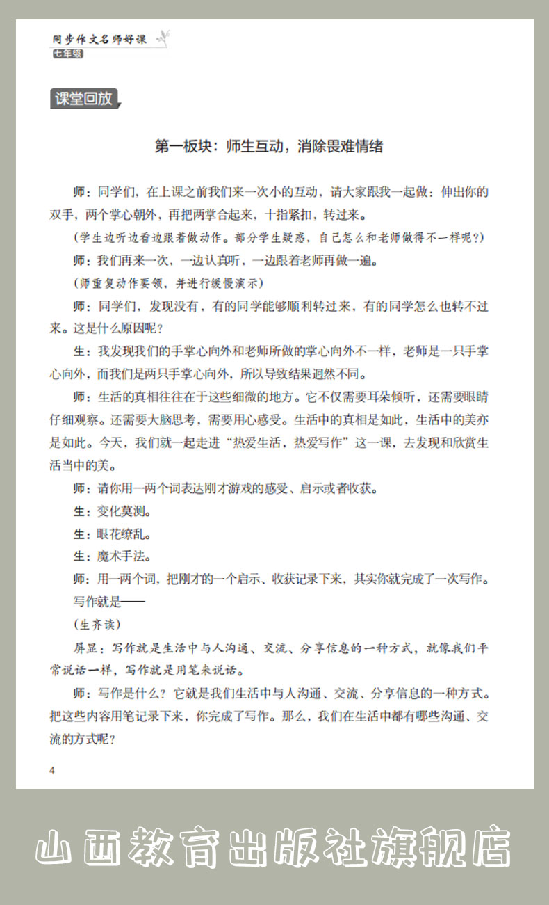 正版同步作文 名师好课 初中七年级 主编 裴海安 张水鱼 书内含课件 教学参考资料 山西教育出版社出版