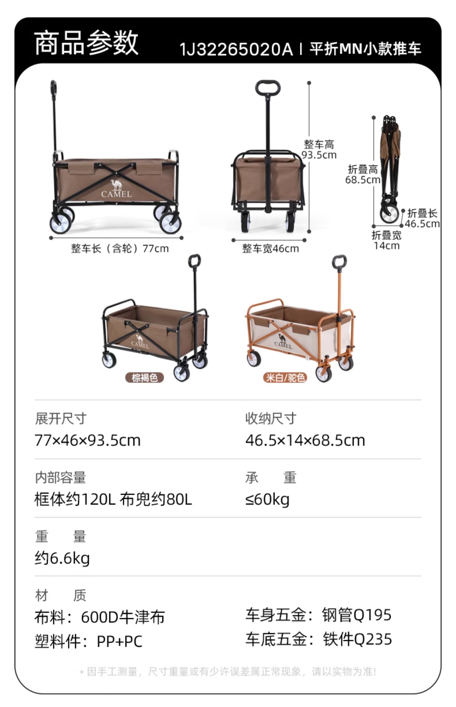 【露营野餐】 camel户外露营车可折叠营地车手推车拖拉车儿童可躺 1J32265020A