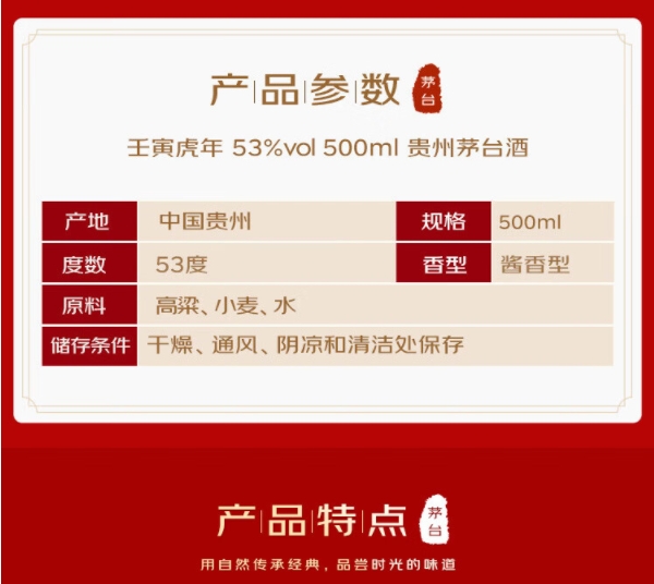 茅台(MOUTAI)生肖纪念 壬寅虎年 53度 500ml 单瓶装(整箱为6瓶)