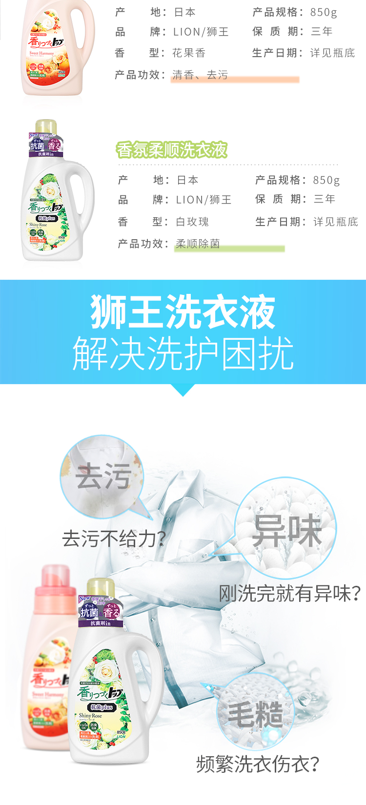 狮王 茉莉香抗菌plus洗衣液850g/瓶