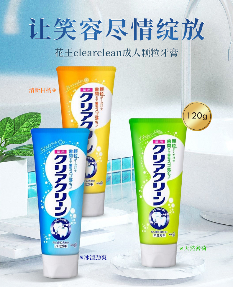 日本进口花王颗粒除口臭除牙垢预防牙龈炎牙膏美白口气清新(柑橘薄荷味) 120g(386199)
