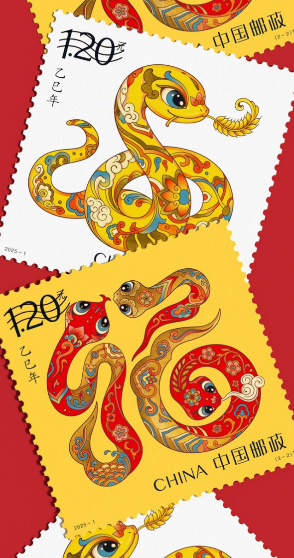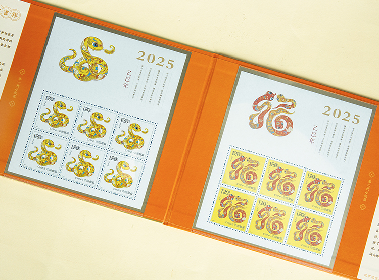 2025年生肖蛇《乙巳年》特种邮票,在传承传统风格的基础上融入了创新设计,以精湛的工艺和丰富的文化内涵展现中华民族精神。