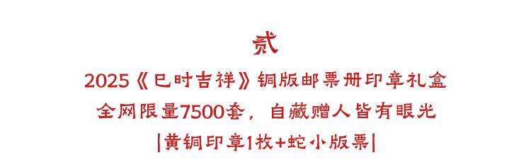 为了迎接乙巳青蛇年,西泠印社联袂中国邮政,打造了2025年《巳时吉祥》生肖邮票印章纪念册年礼。