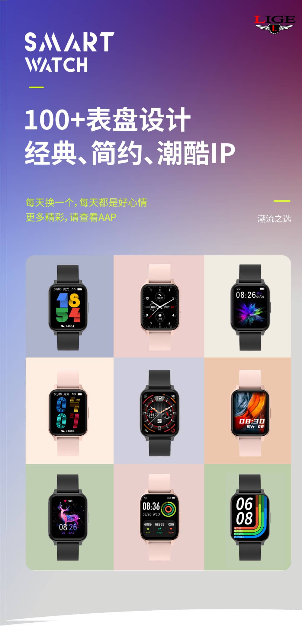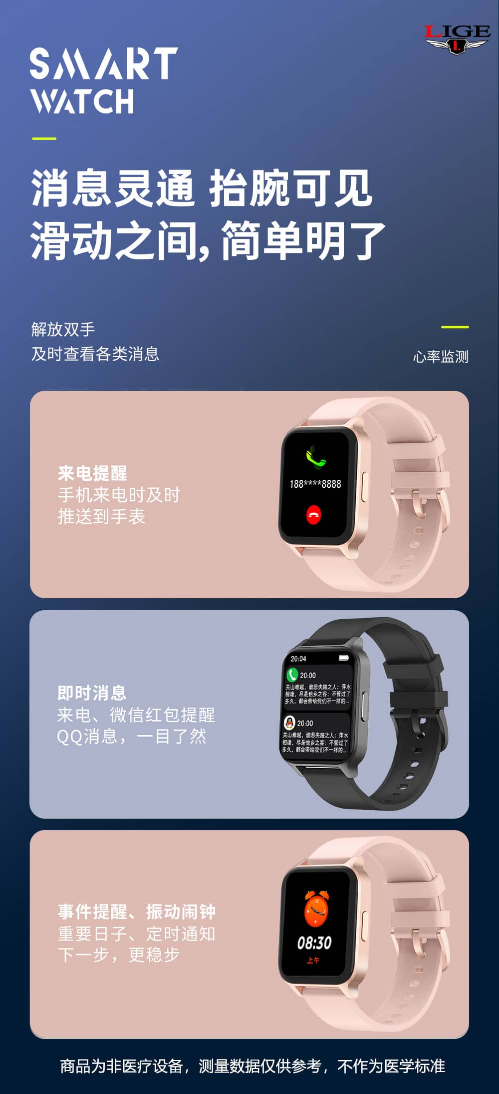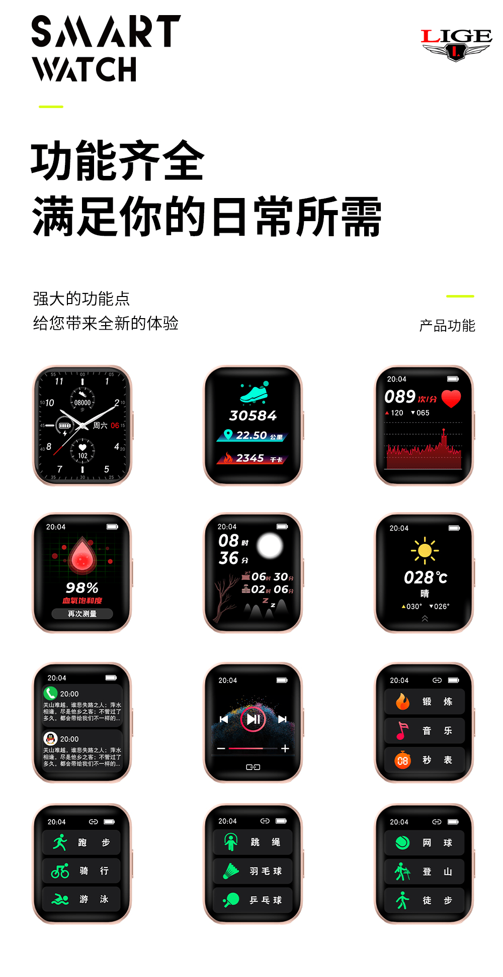 【推荐】利格超薄高清运动健康智能手表BW0612