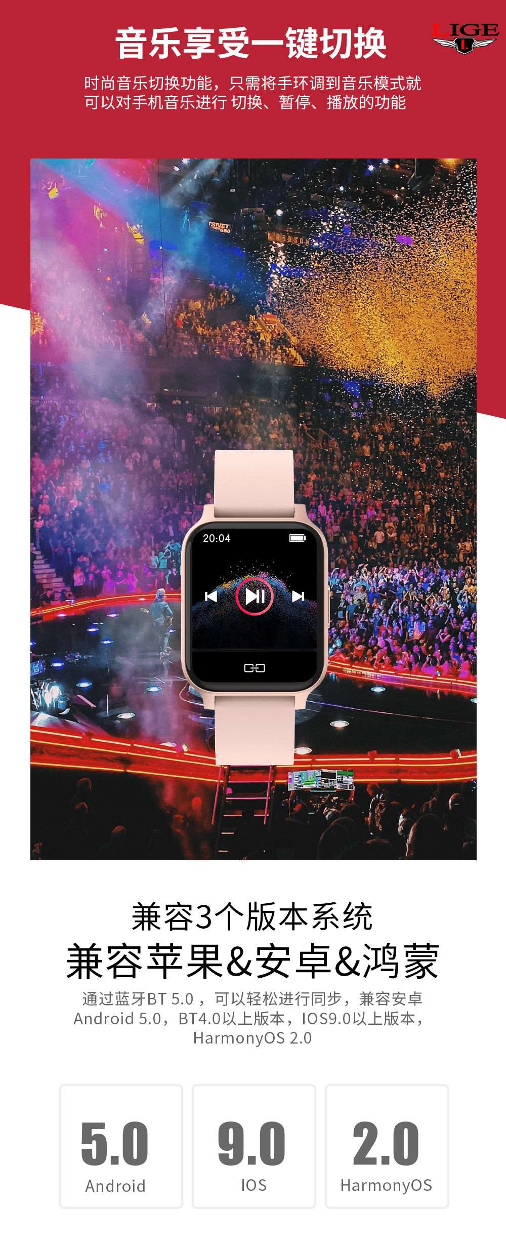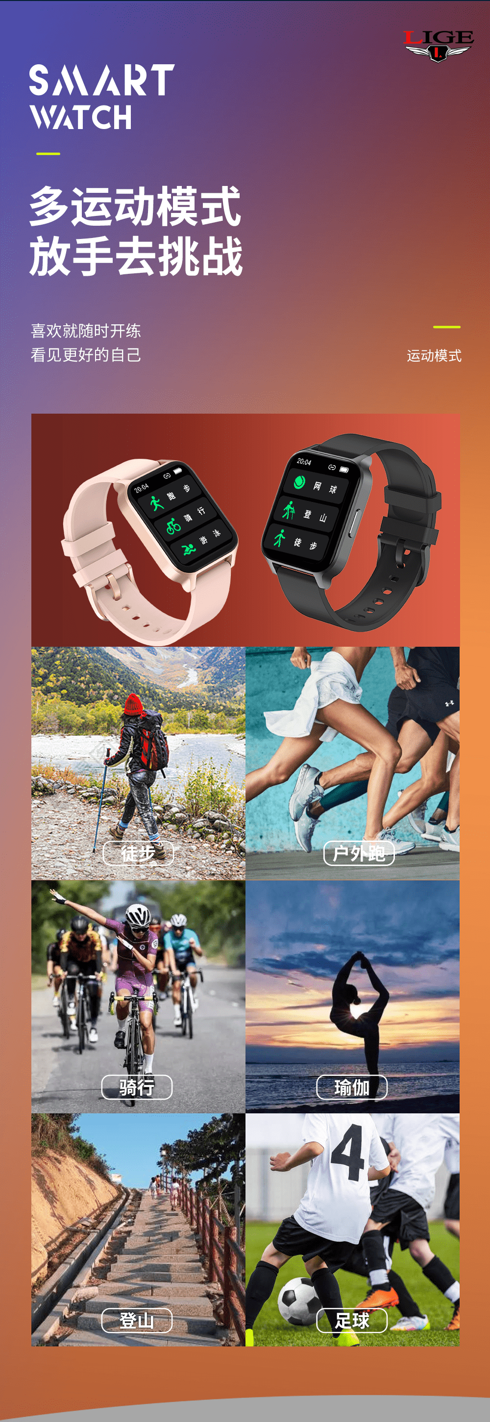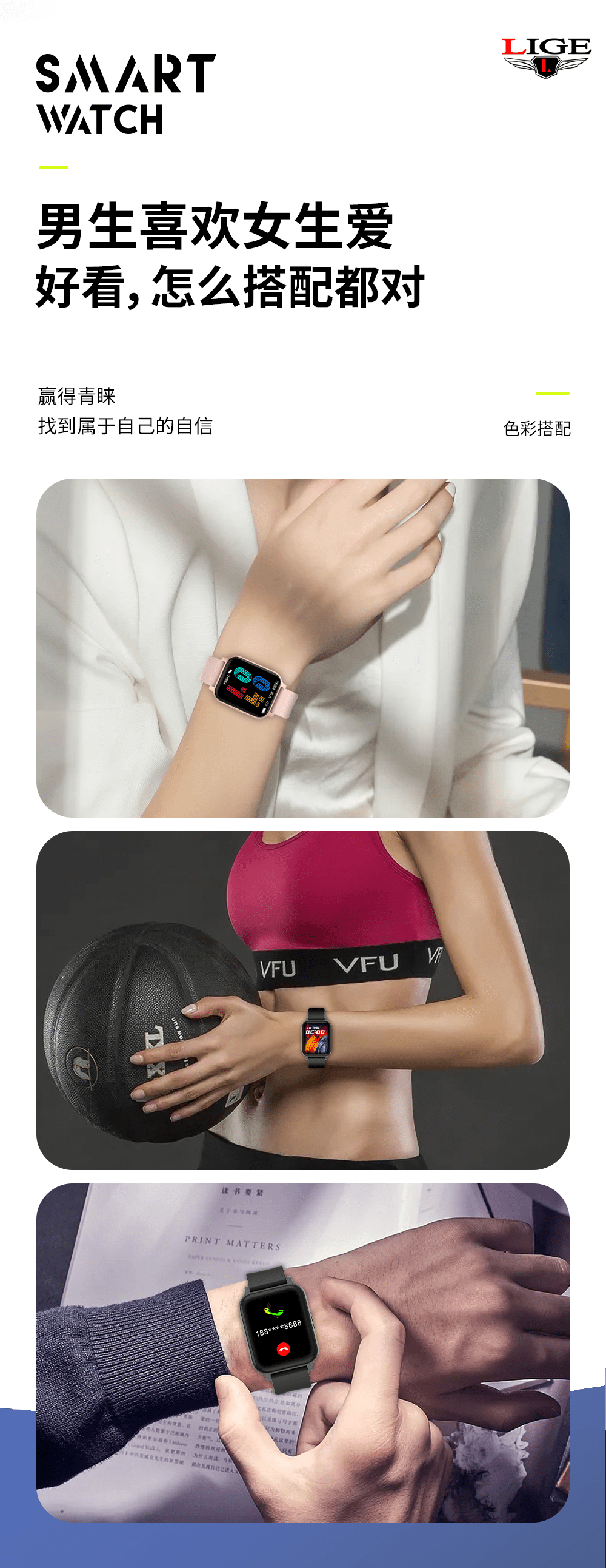 【推荐】利格超薄高清运动健康智能手表BW0612