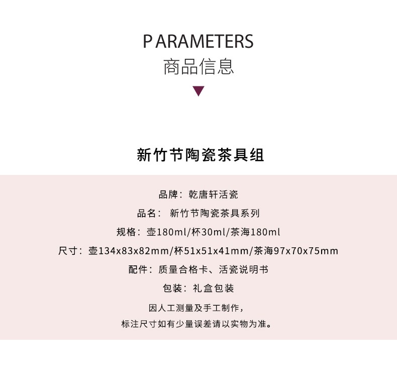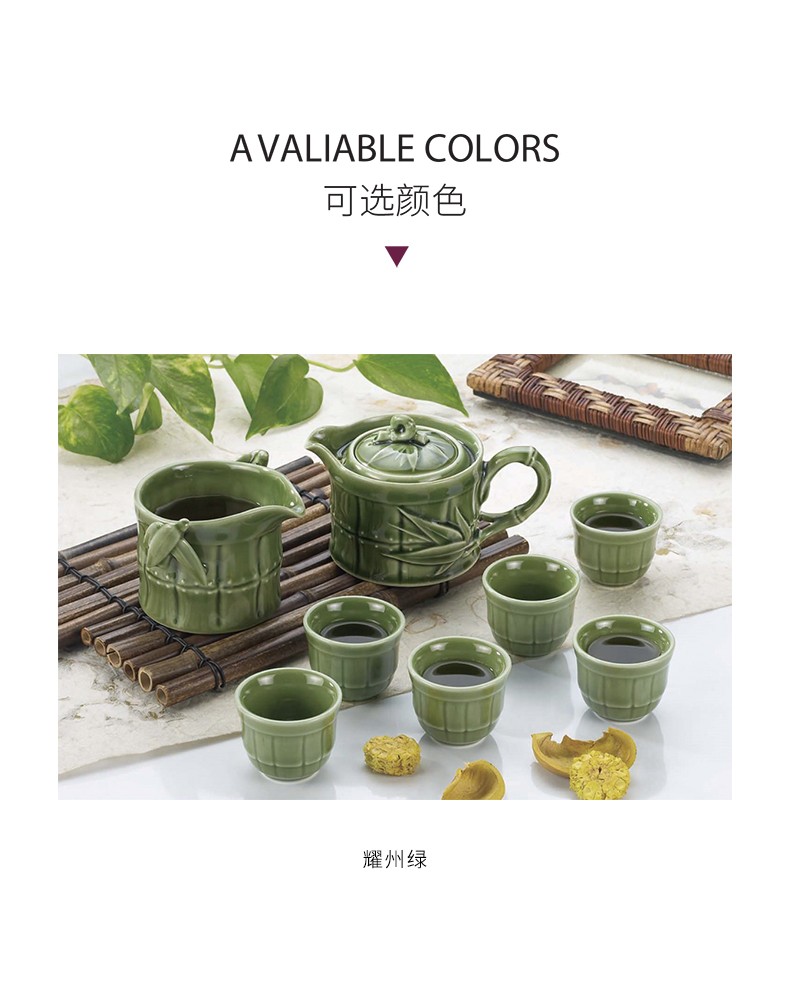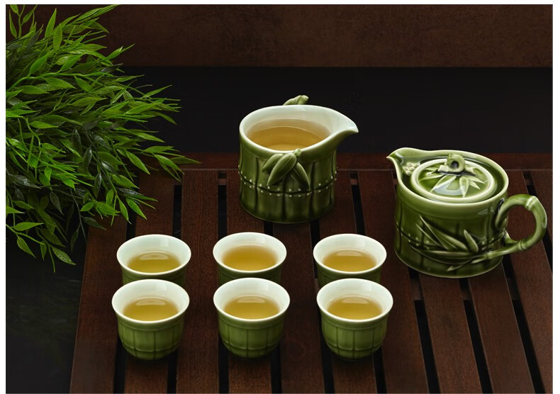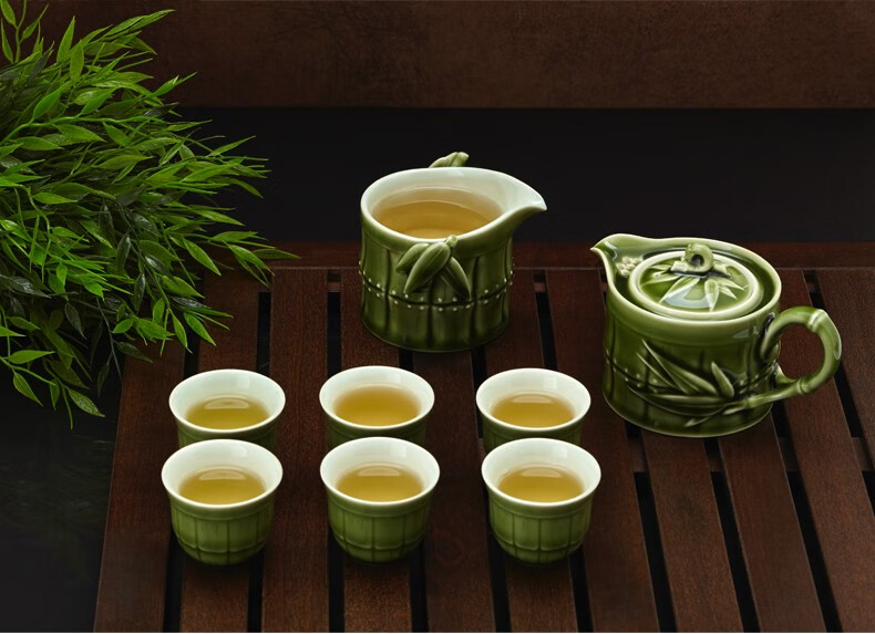乾唐轩活瓷杯新竹节陶瓷茶具组 古风文人送礼装 1壶6杯1茶海