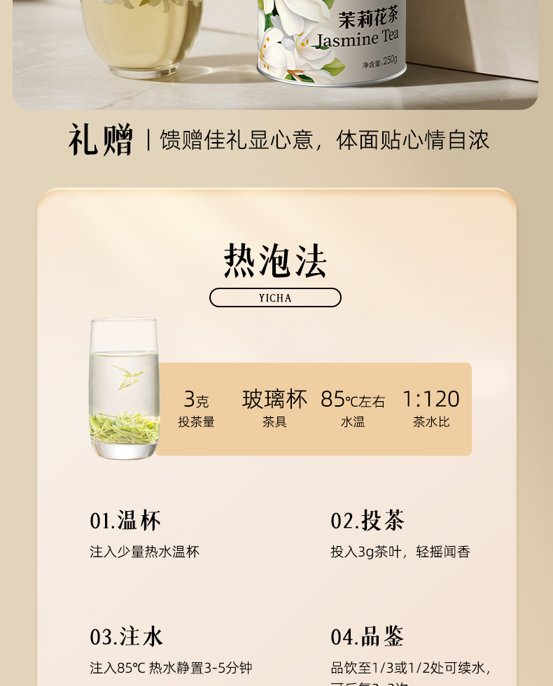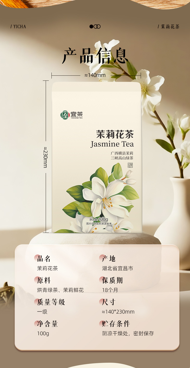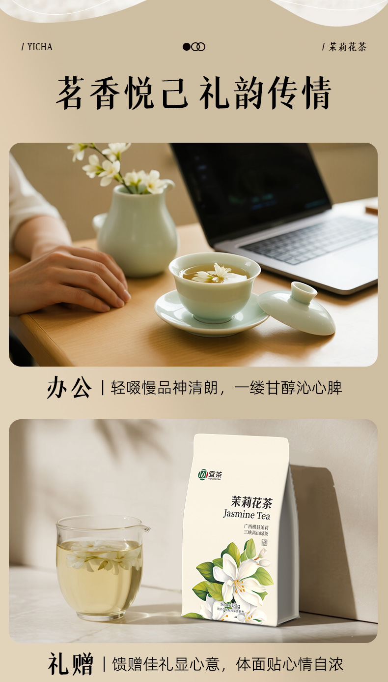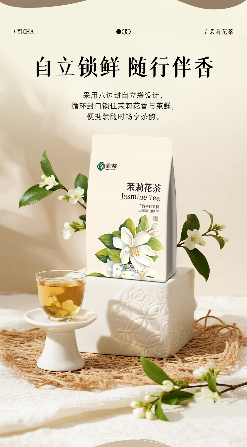 【宜茶甄选】宜茶2025新茉莉花茶浓香型茉莉绿茶茶叶袋装一级 袋装100g/罐装250g