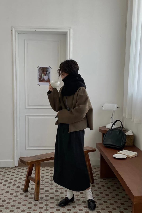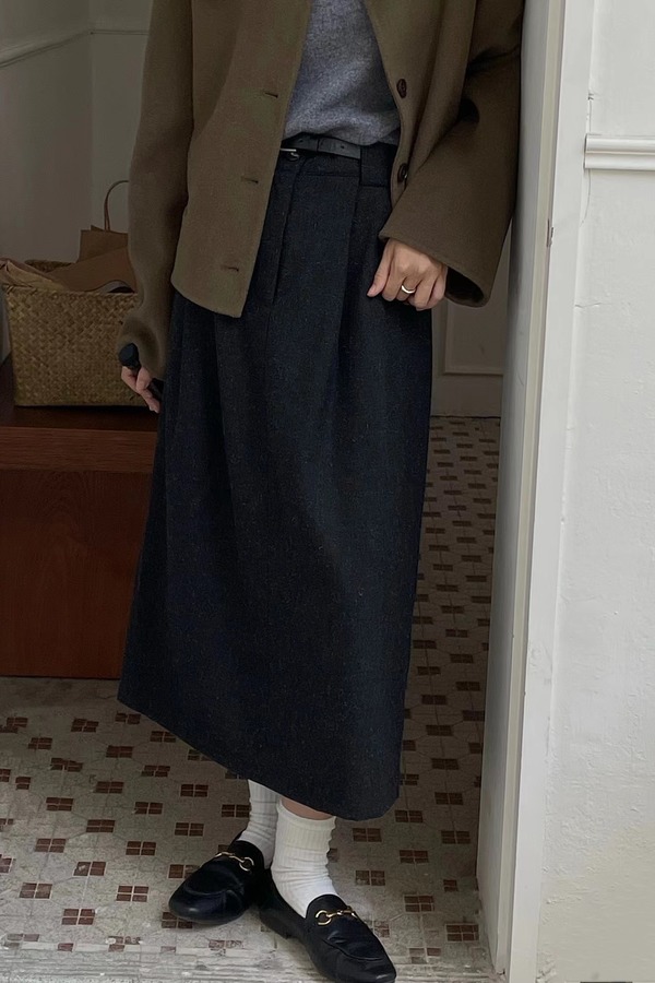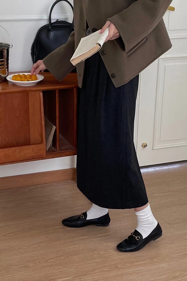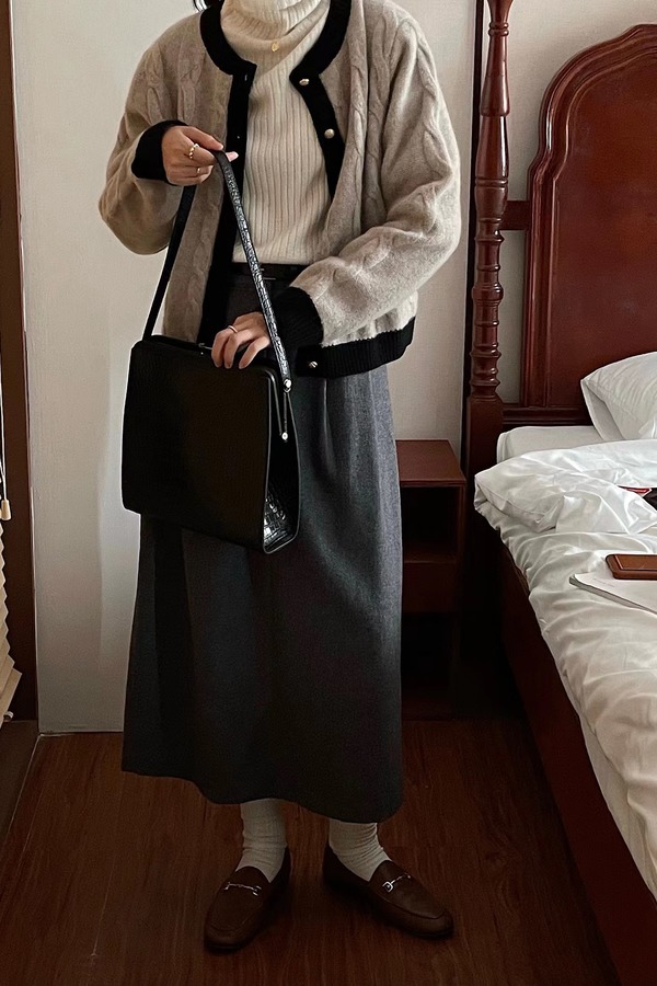 Le Malene 黑灰色H型韩版半裙(无腰带) 15085